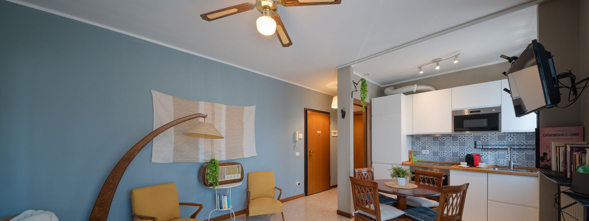 Klimaanlage, gut ausgestattete Küche, Ofen, Tiefkühler, Kühlschrank, WiFi Internet, Italienische Kaffeemaschine, Herd, Esstisch, Satelliten-TV, Ausgang auf den Balkon, Sofa bed, Mikrowelle