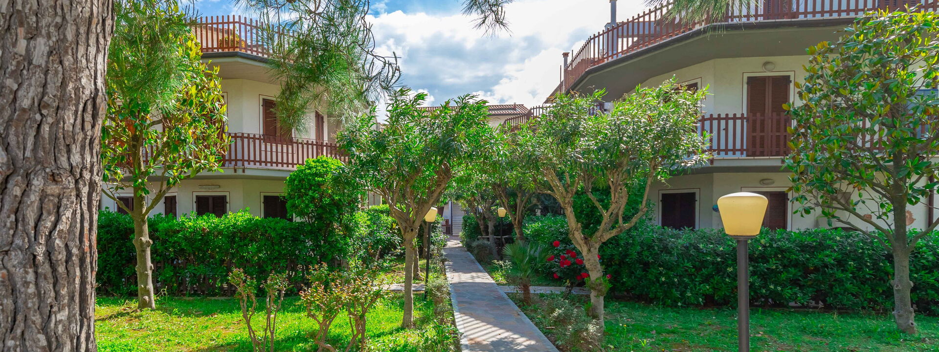 Der Blick geht auf einen grünen Park neben dem Gebäude