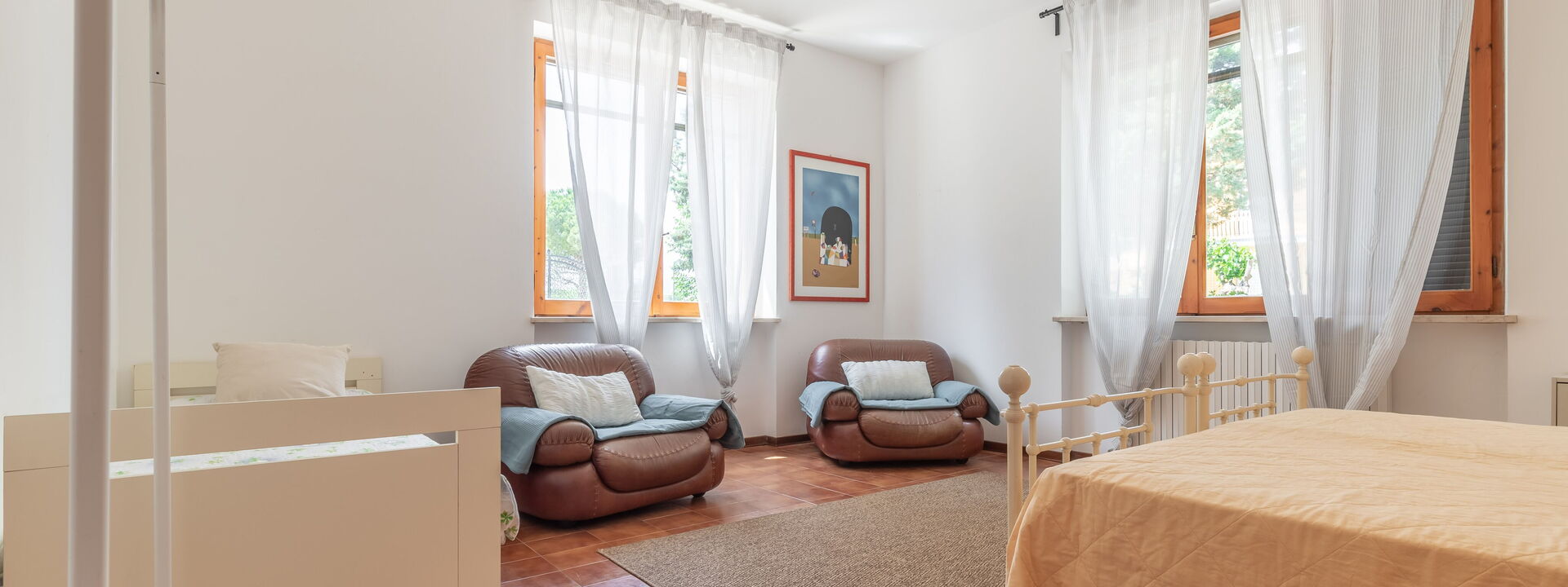 1 Schlafzimmer mit einem Einzelbett und einem Doppelbett