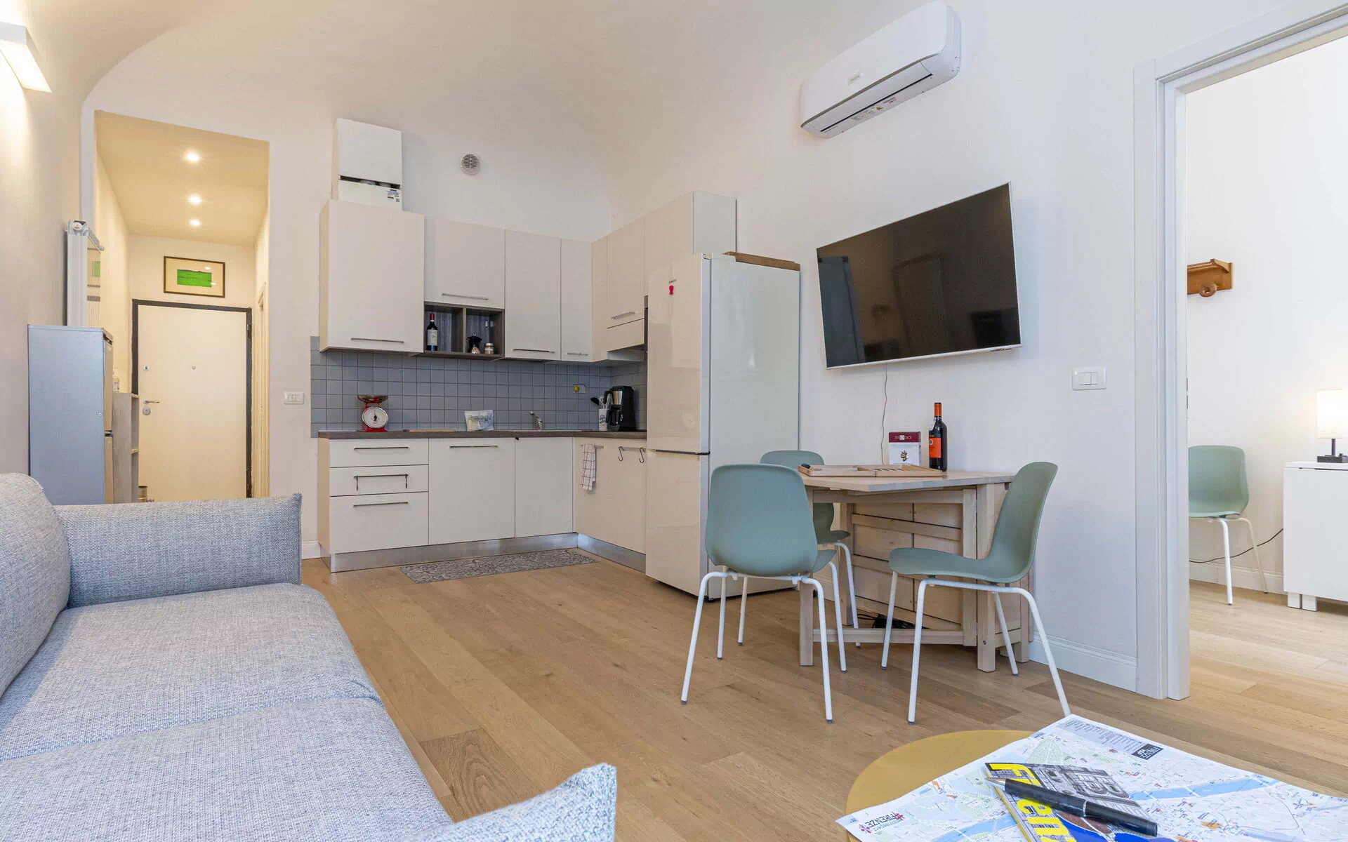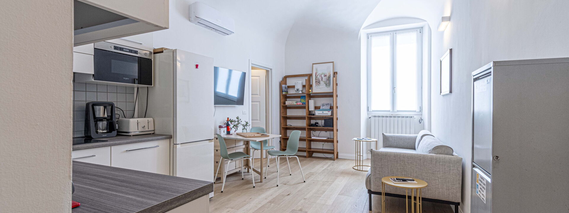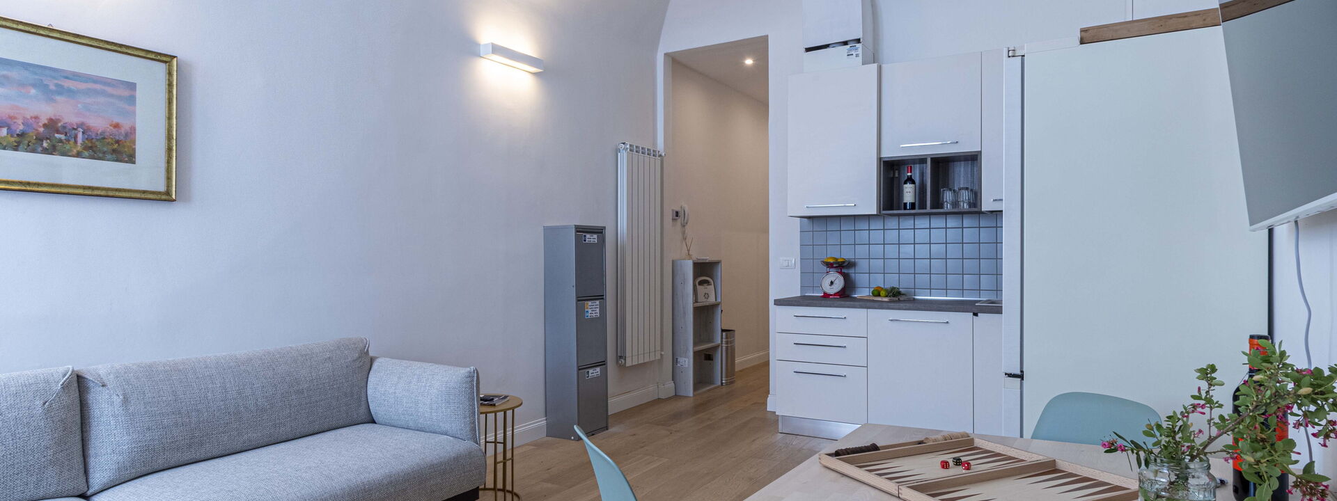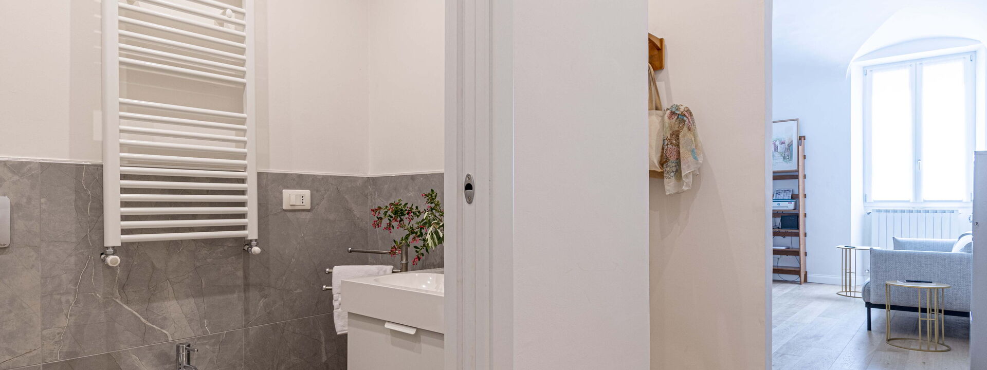 Dieses helle und einladende Apartment bietet Platz für bis zu 4 Personen und verfügt über zwei Doppelzimmer und ein makelloses Badezimmer. Es befindet sich im zweiten Stock eines charmanten historischen Gebäudes mit Aufzug. Die raffinierte Einrichtung und das elegante Interieur schaffen eine einladende und moderne Atmosphäre, während die großen Fenster dafür sorgen, dass natürliches Licht sanft in jeden Raum fällt. Die Schlafzimmer sind Oasen der Ruhe, mit bequemen Doppelbetten und Möbeln, die für maximale Entspannung sorgen. Das Badezimmer mit seiner hochwertigen Ausstattung und der geräumigen Dusche bietet einen Ort der Erfrischung nach einem erlebnisreichen Tag in der Stadt. Atelier La Scala ist die ideale Wahl für diejenigen, die das Florentiner Erlebnis in vollen Zügen genießen und dabei Komfort, Stil und eine unvergleichliche zentrale Lage genießen möchten.