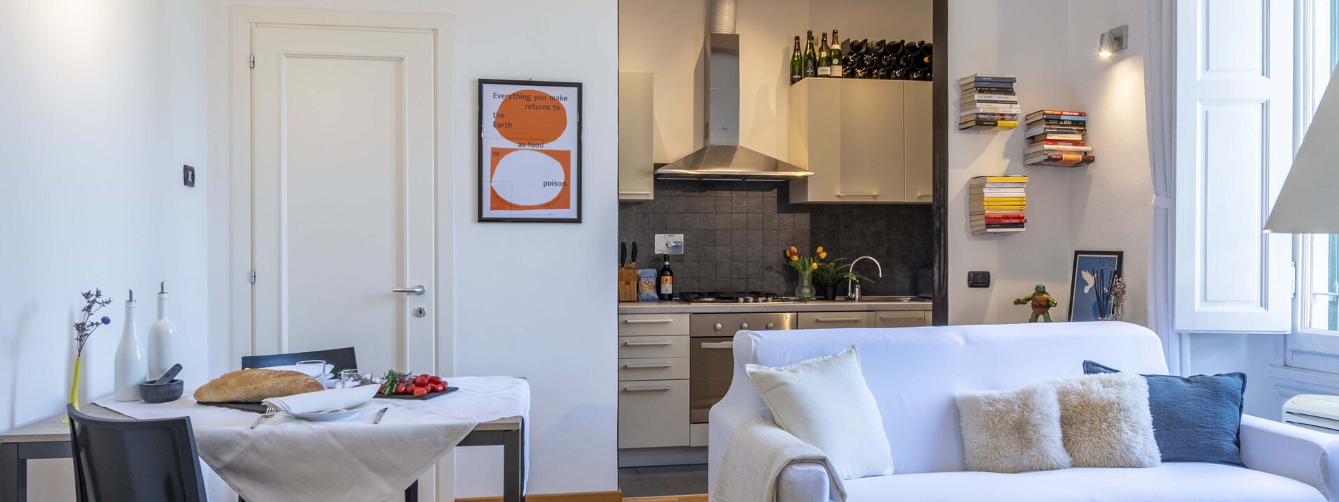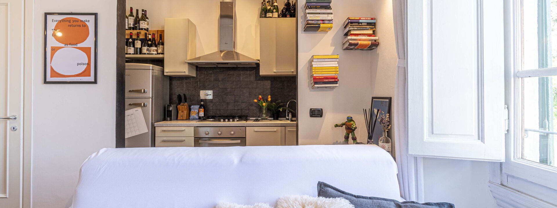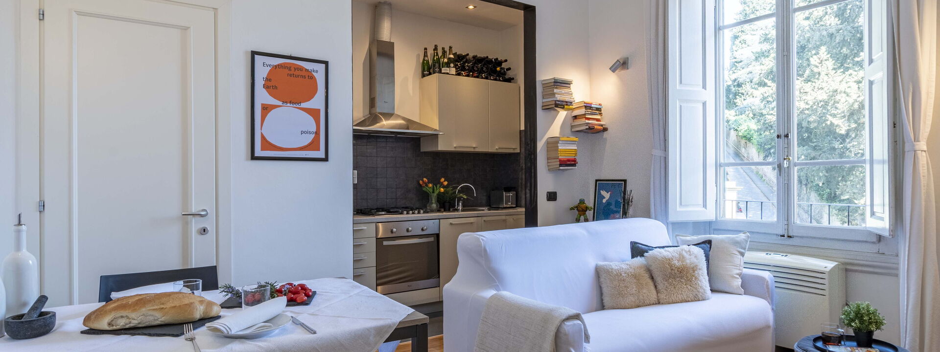 Die Green Suite Florence bietet Platz für bis zu 4 Personen und verfügt über ein Schlafzimmer mit Doppelbett und ein gemütliches Wohnzimmer mit einem Doppelschlafsofa. Die Küche ist komplett ausgestattet, um köstliche Mahlzeiten zuzubereiten, und das Badezimmer ist modern und funktional. Die Green Suite Florence ist perfekt für Paare, Familien oder Gruppen von Freunden und vereint Komfort, Eleganz und Funktionalität in einer wirklich strategischen Lage.