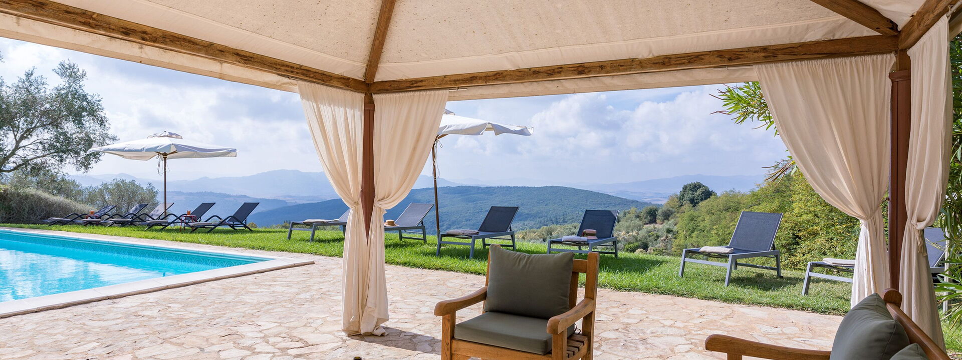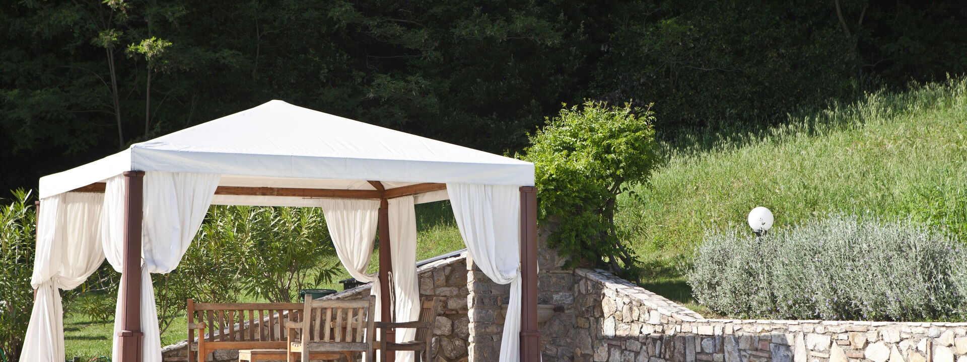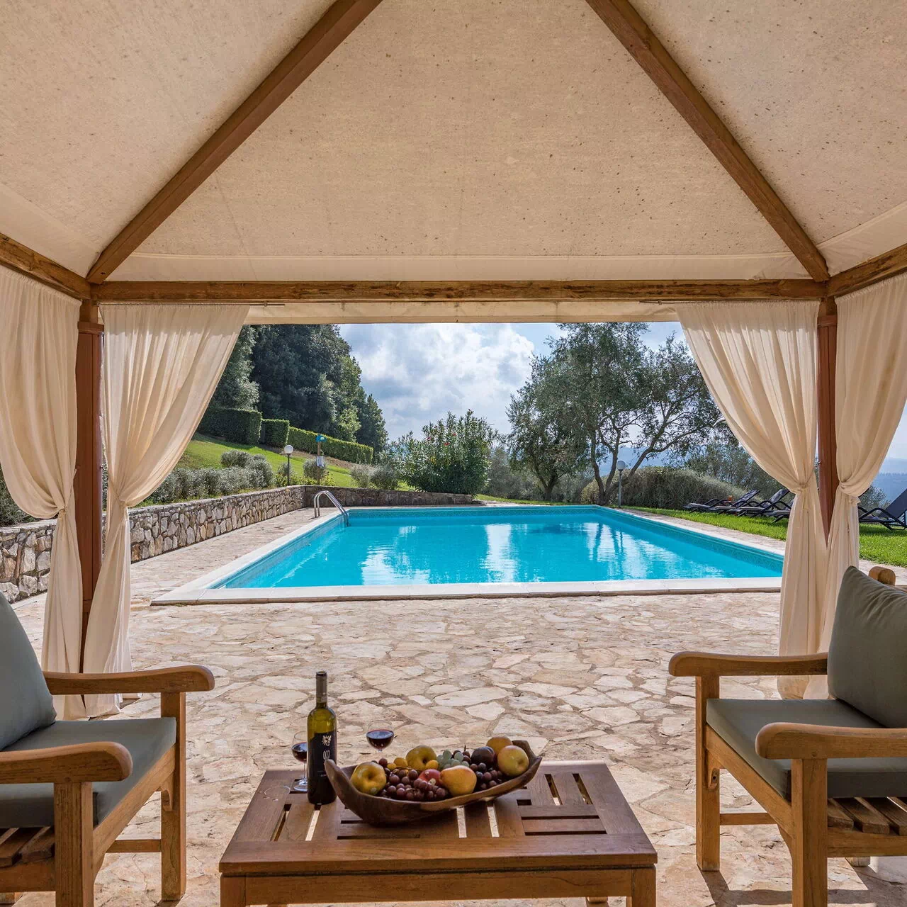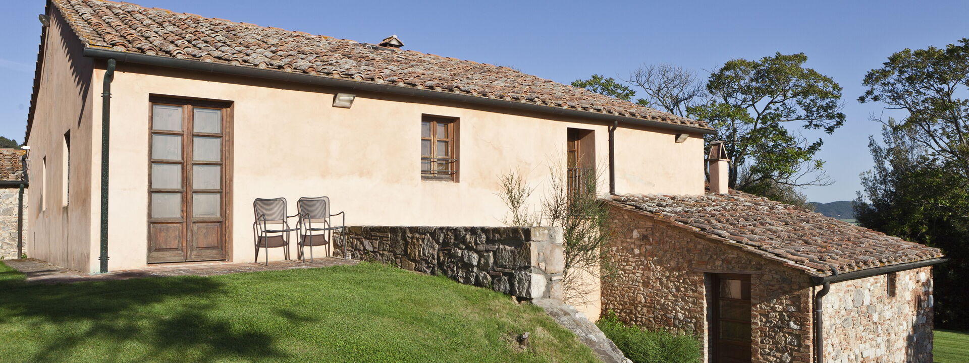 Jedes Apartment verfügt über einen eigenen Garten mit einem Bereich zum Essen gehen und die 3 Apartments teilen sich den Pool. Die 2 Bauernhäuser sind stattdessen zwei unabhängige Villen mit jeweils einem großen privaten Garten, der mit Ruhebereichen, Gartenmöbeln und Essbereich sowie einem exklusiven Swimmingpool ausgestattet ist.