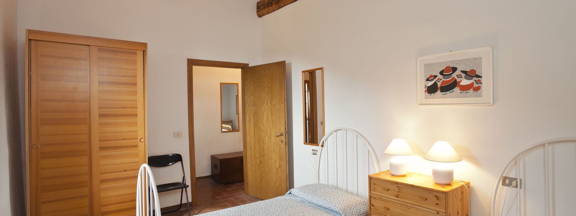 1 Schlafzimmer mit zwei Einzelbetten (90x180) umwandelbar in ein Doppelbett