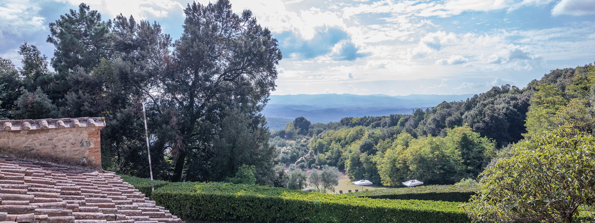 Der Blick ist auf die umliegenden Hügel