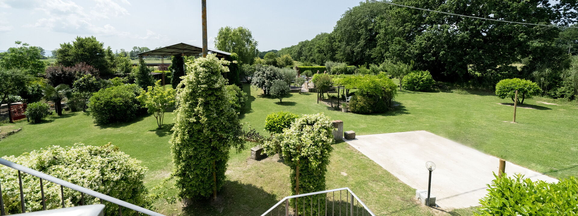 Das Bauernhaus verfügt über einen riesigen Park mit vielen Pflanzen- und Grünpflanzenarten.