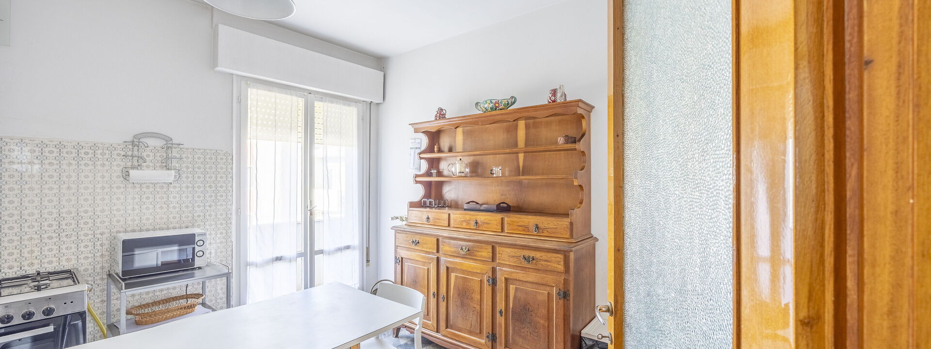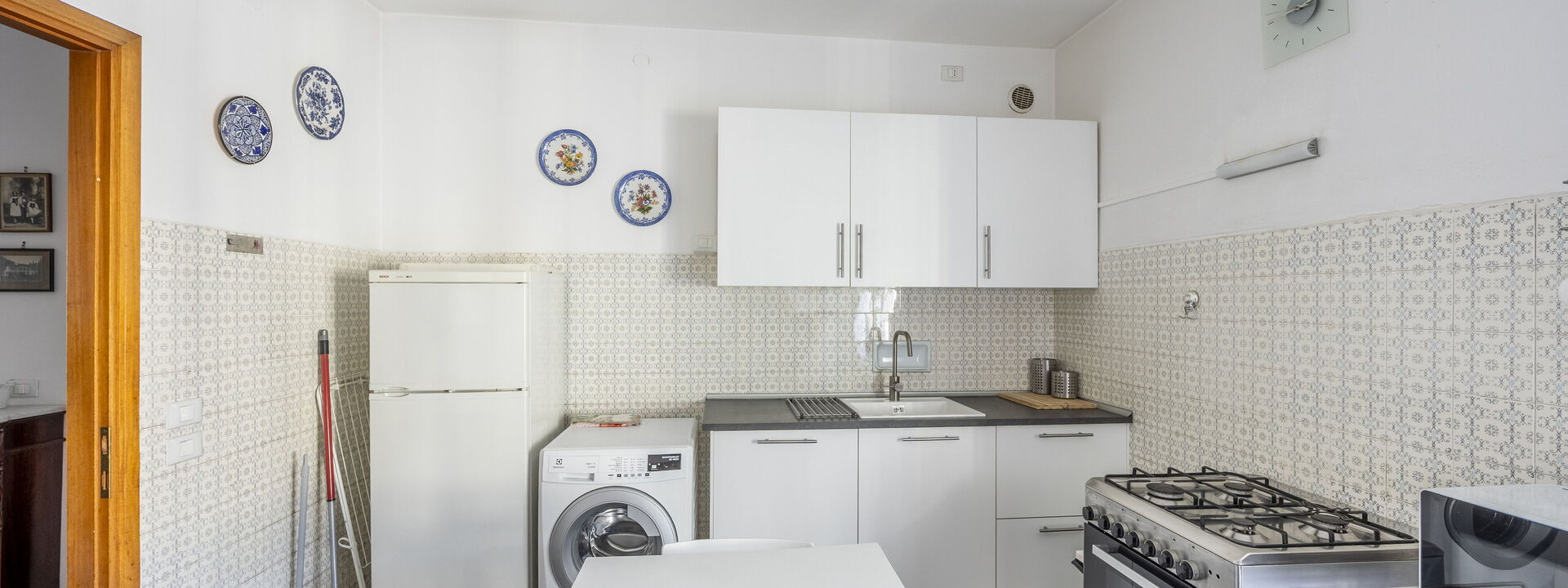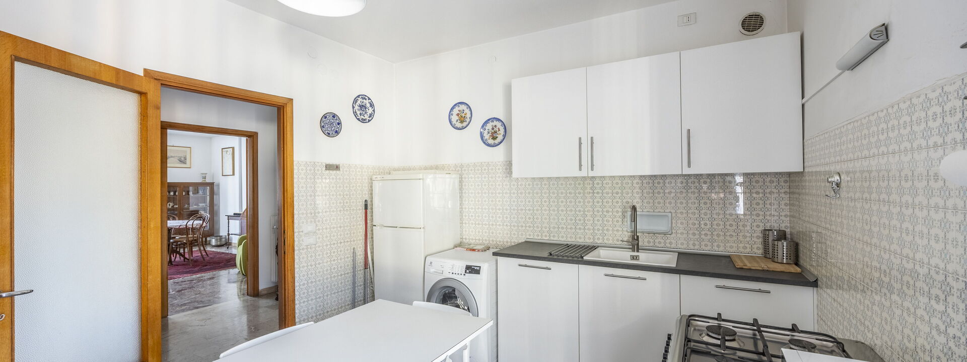 Amerikanische Kaffeemaschine, Esstisch, Ausgang auf den Balkon, Tiefkühler, Kühlschrank, Italienische Kaffeemaschine, Mikrowelle, Ofen, Herd, Toaster, gut ausgestattete Küche, WiFi Internet