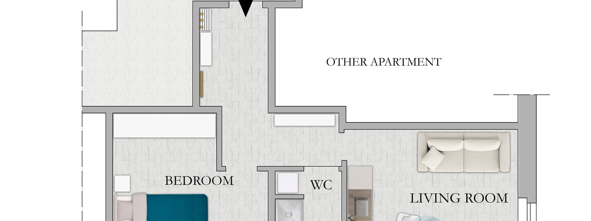 L'appartement est situé en mezzanine, il y a des marches pour entrer dans le bâtiment.