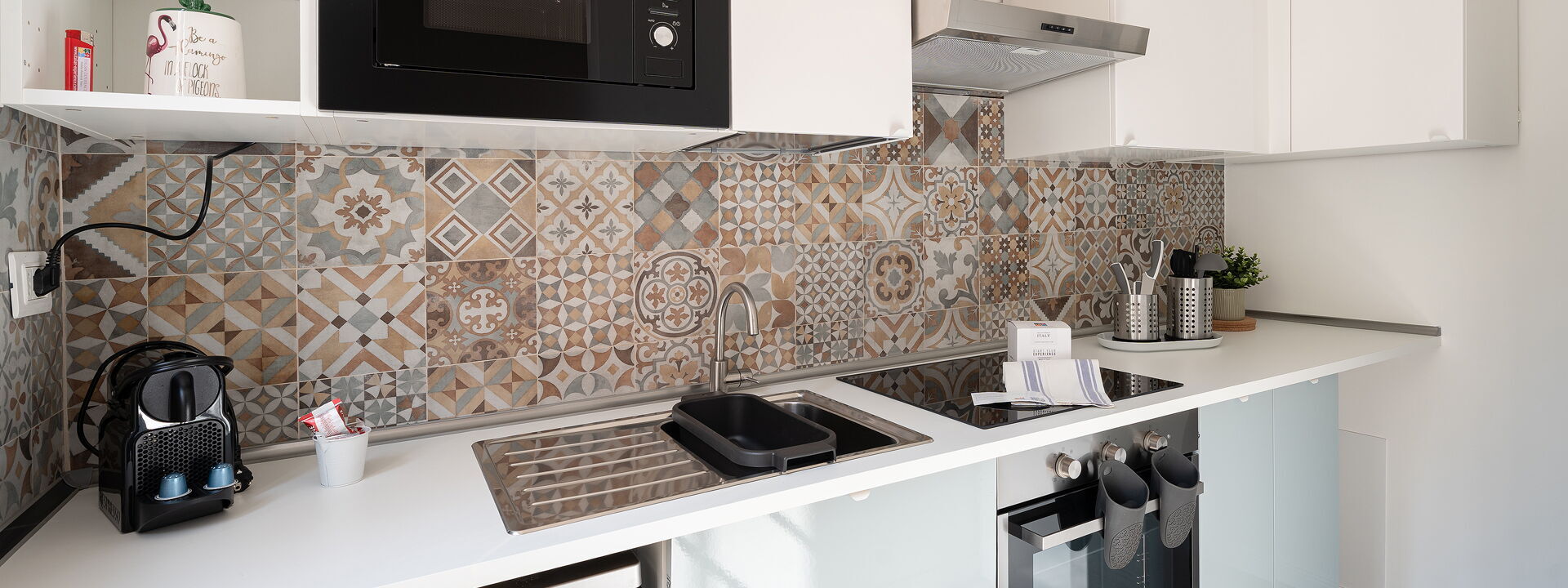 Cuisine entièrement équipée avec réfrigérateur et plaques de cuisson