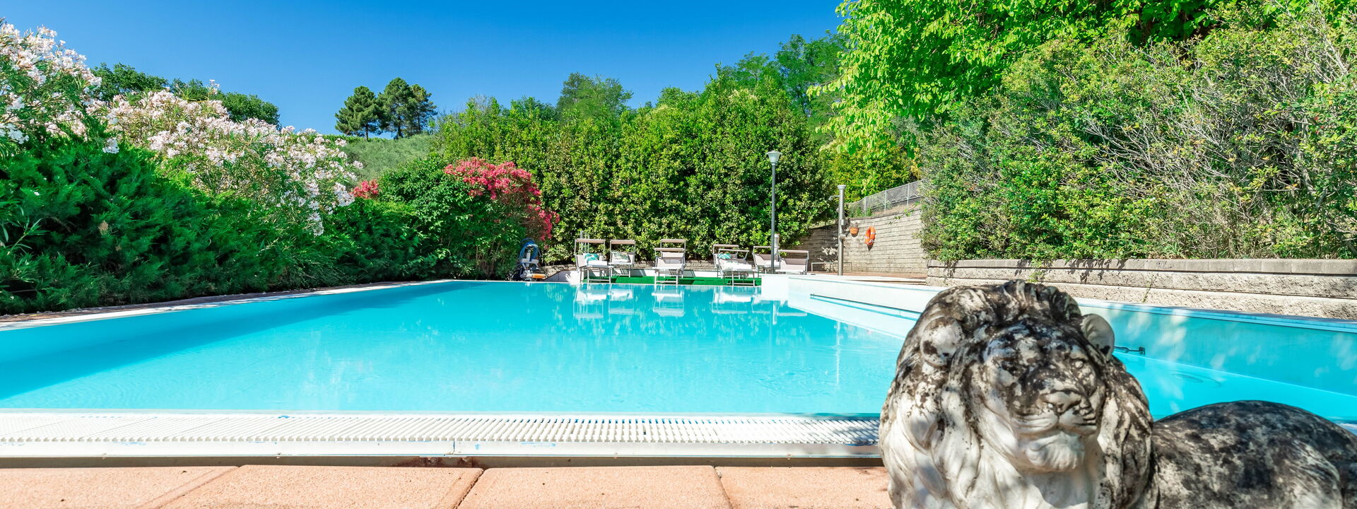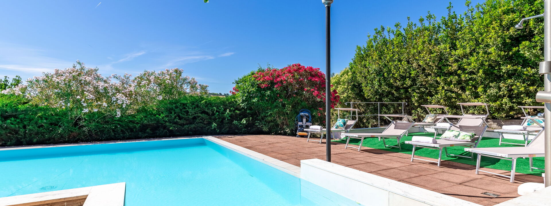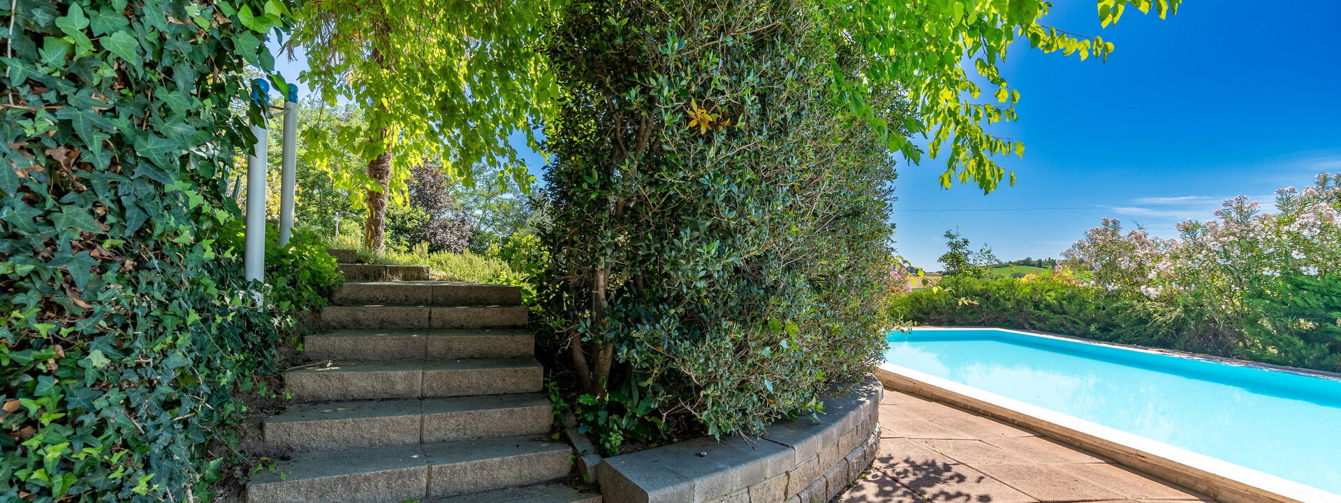 Pendant la journée, vous pourrez vous détendre au bord de la piscine, entourée de la verdure du jardin, idéale pour des moments de tranquillité et de détente totale.