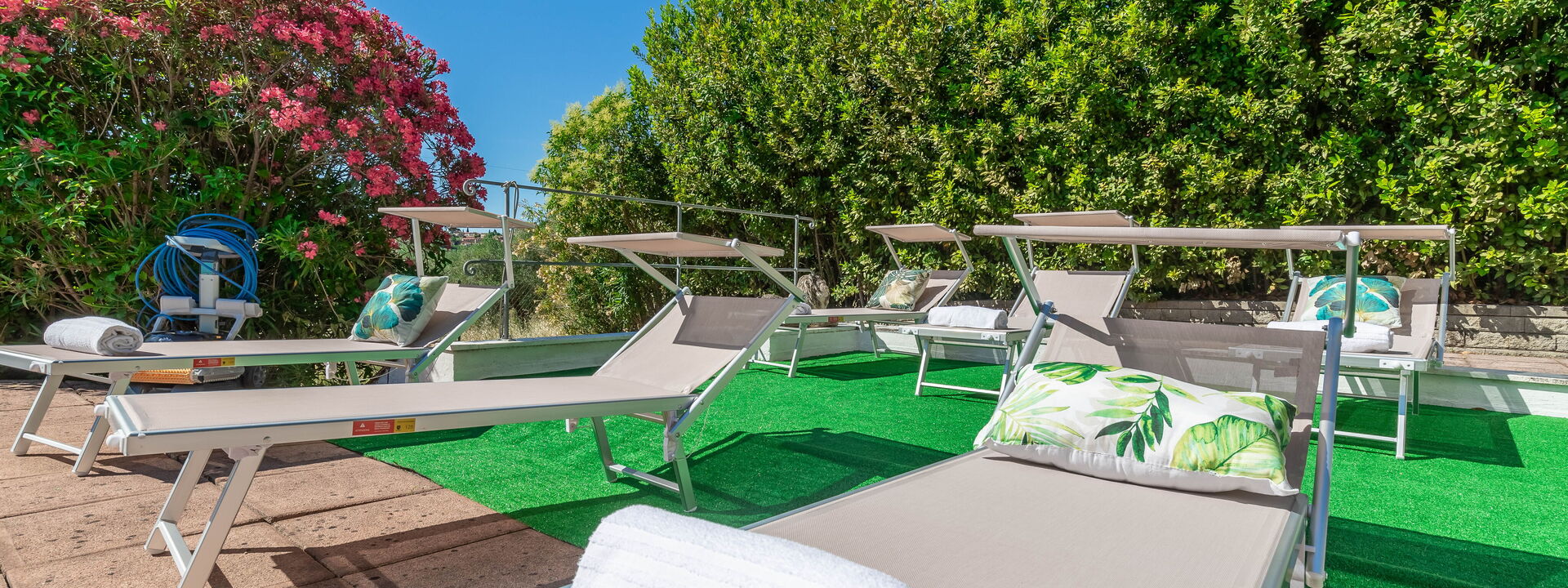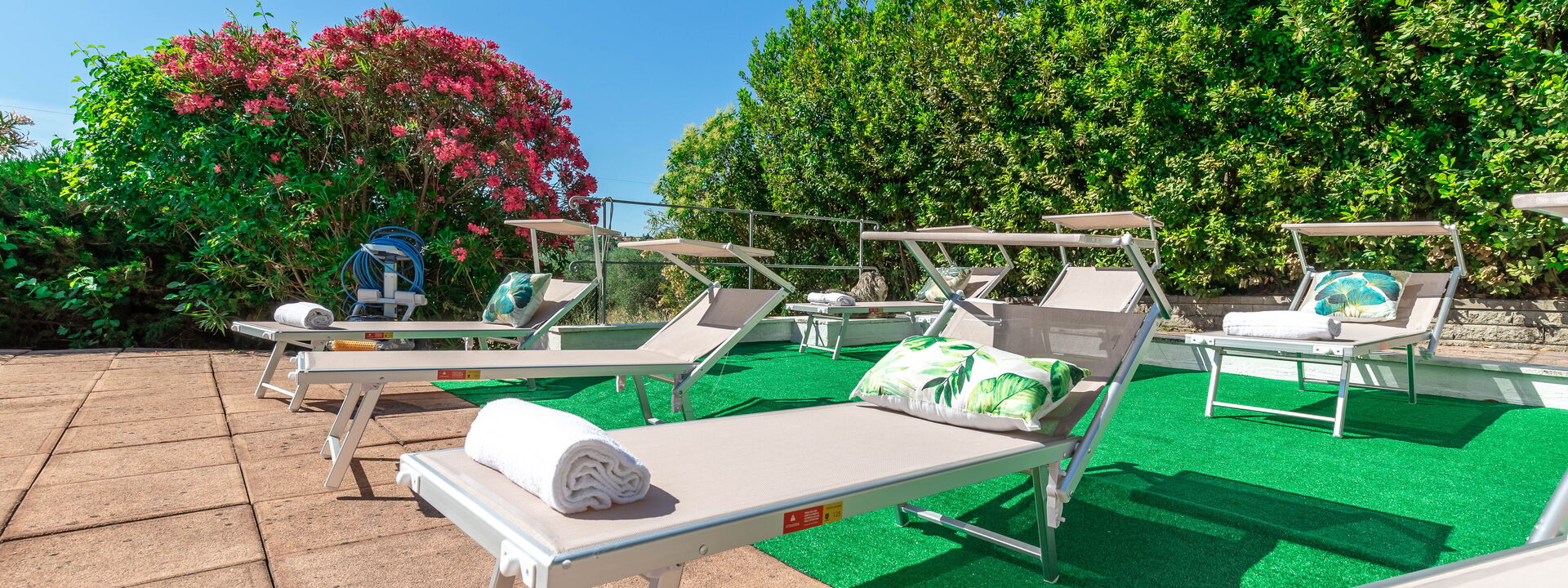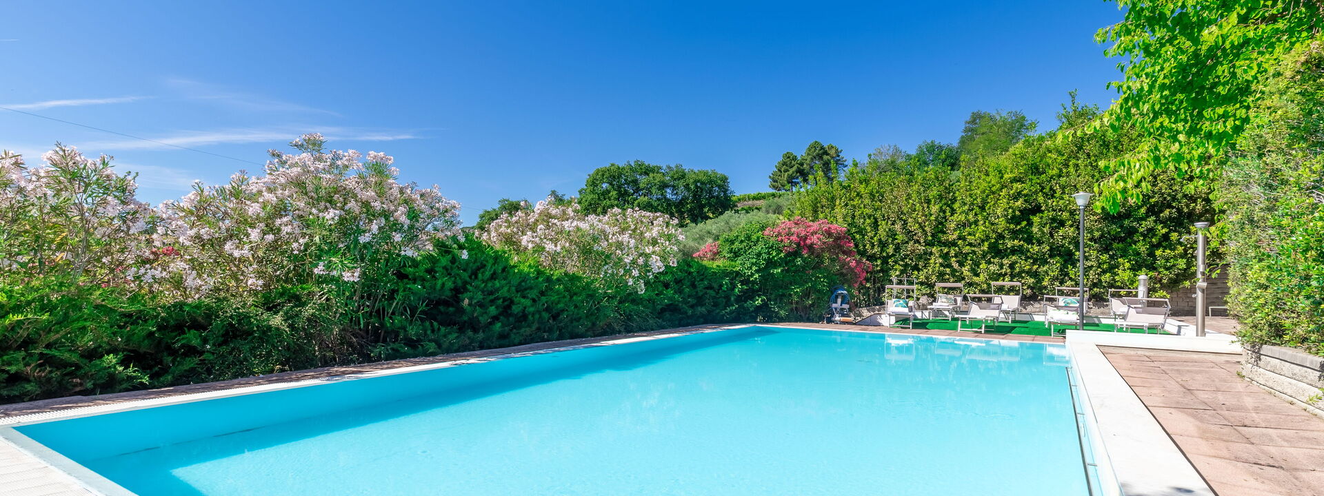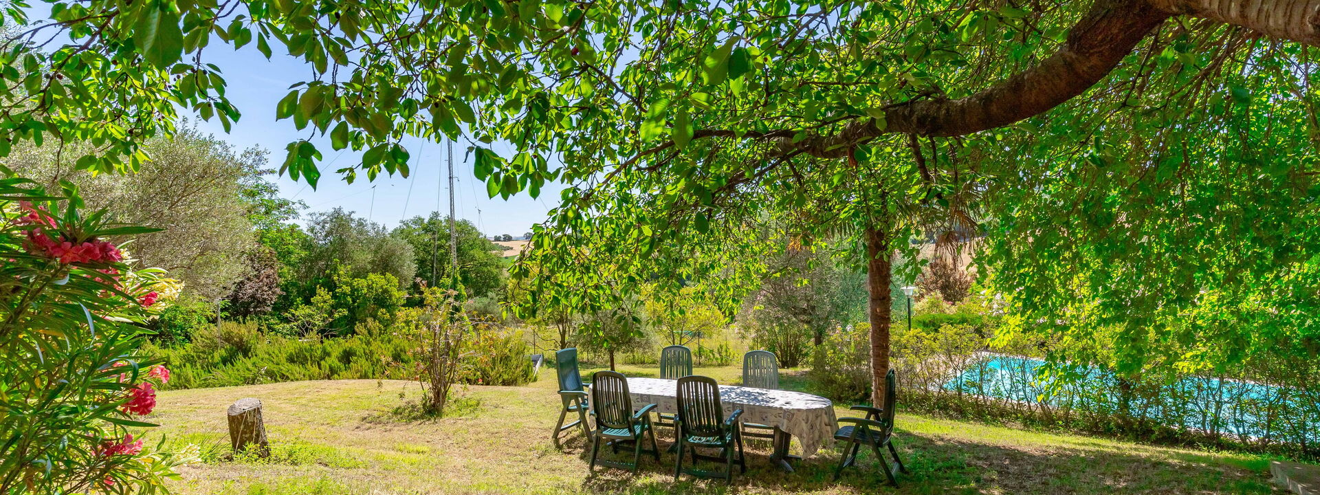 Pendant la journée, vous pourrez vous détendre au bord de la piscine, entourée de la verdure du jardin, idéale pour des moments de tranquillité et de détente totale.