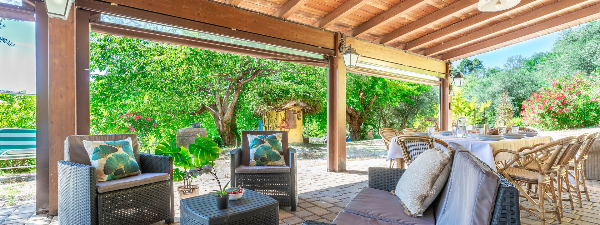 La villa est entourée de verdure et est donc très calme, les seuls bruits que vous entendrez sont les doux sons de la nature comme le chant des oiseaux et le bruissement des feuilles.