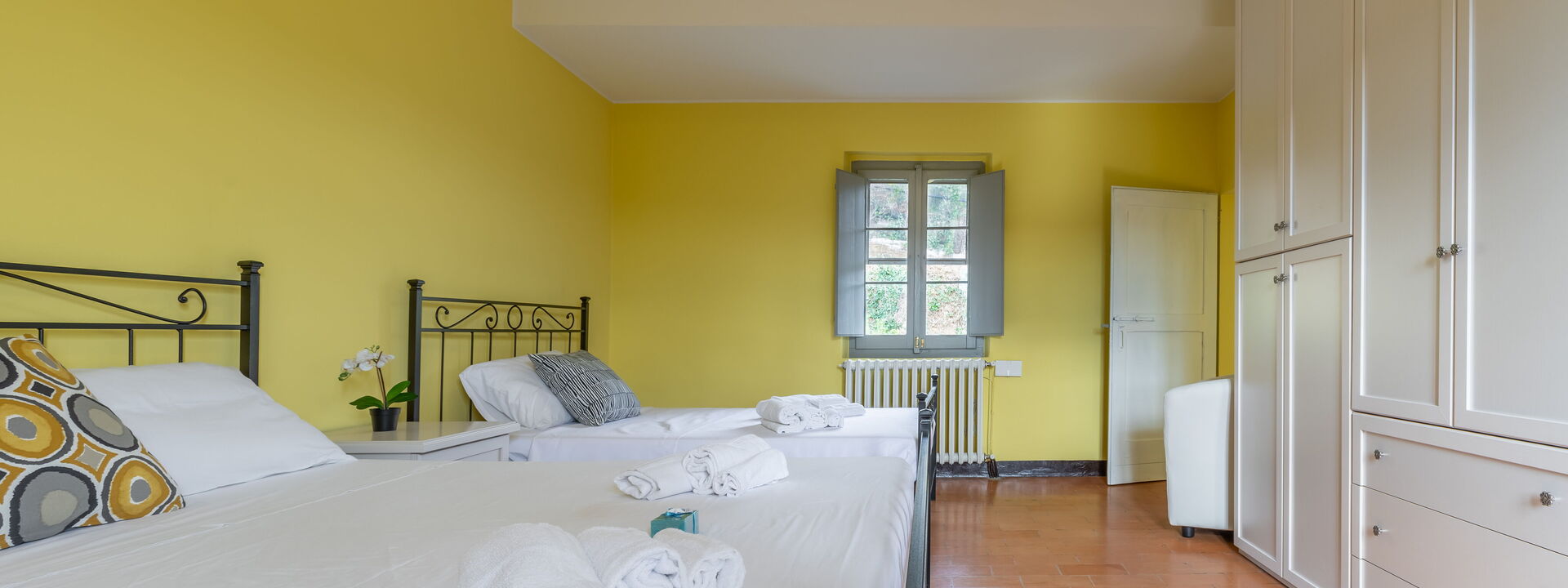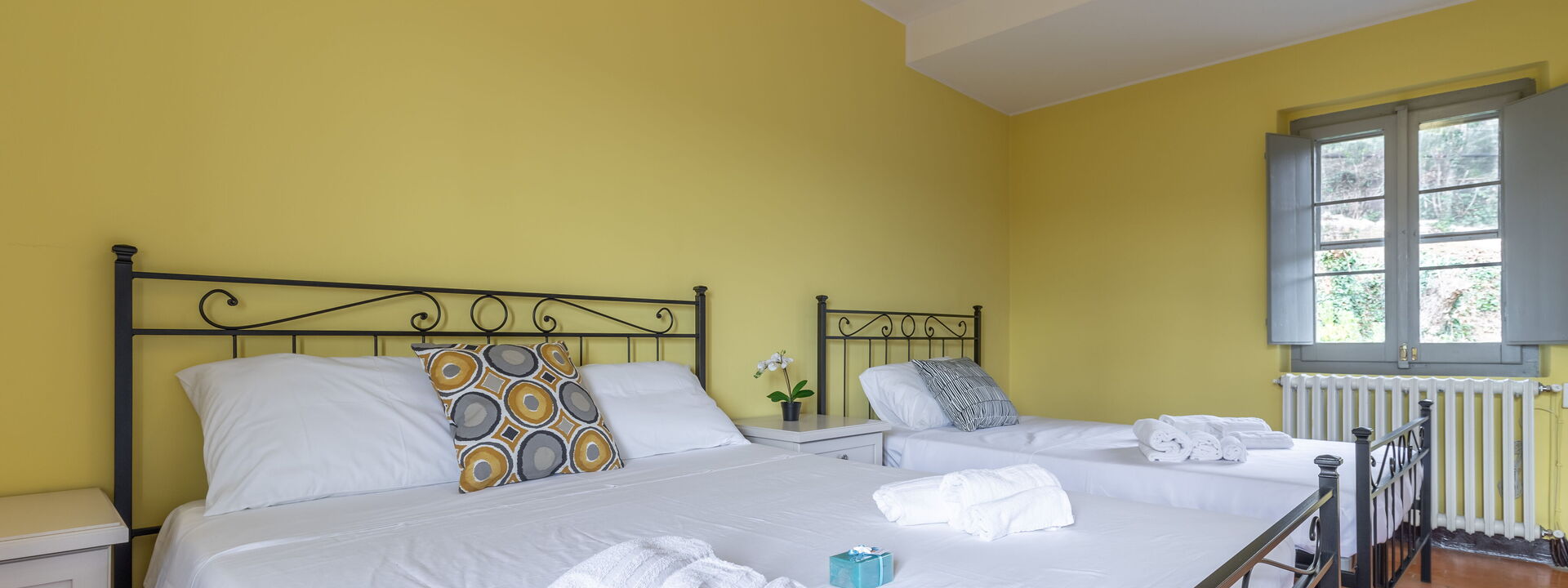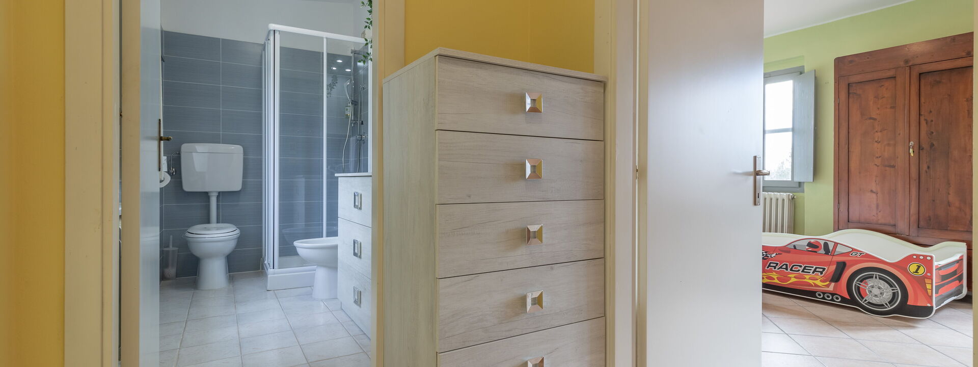 1 chambre double avec lit bébé et lit enfant