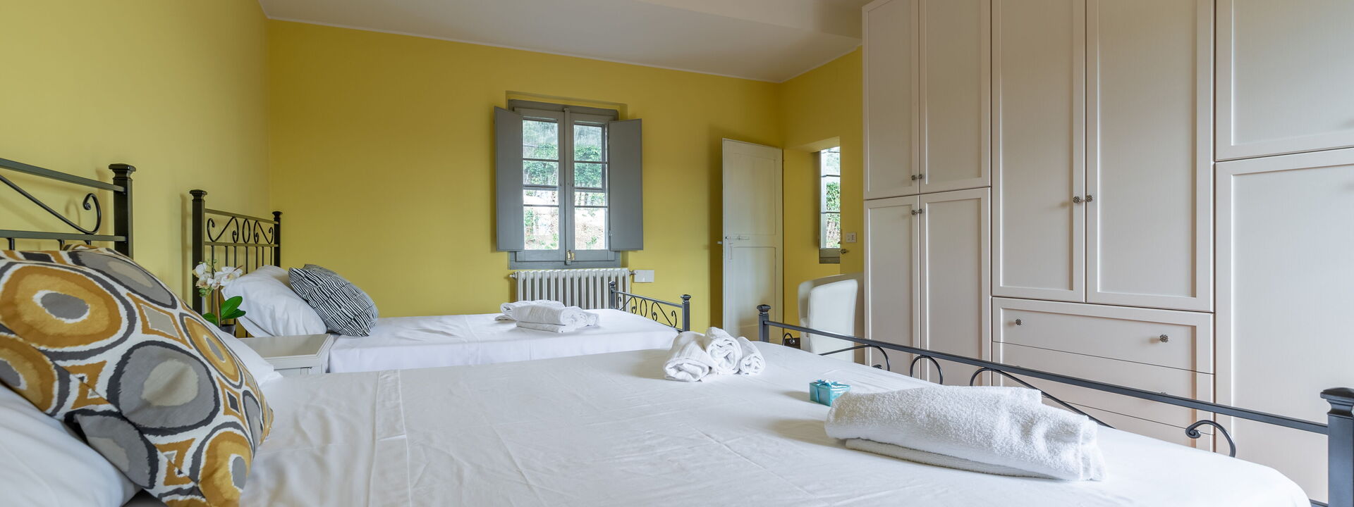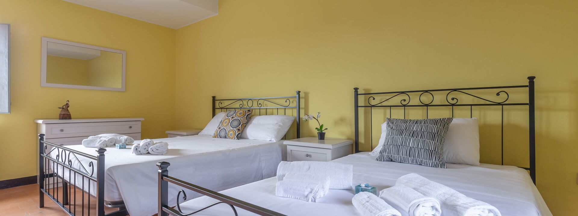 1 chambre avec deux lits doubles avec un canapé lit
