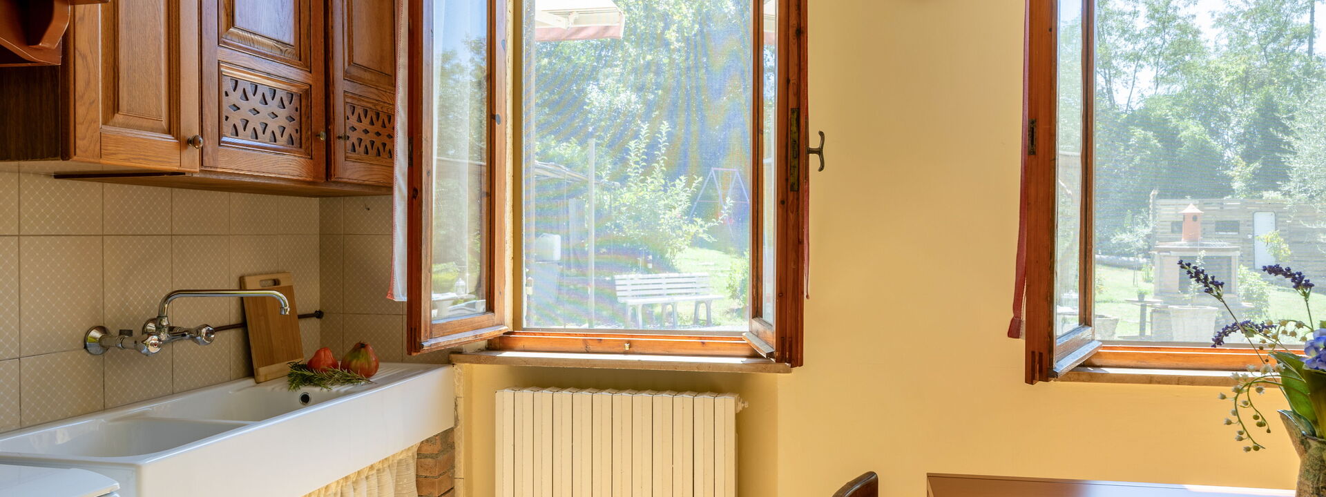 L'appartement Alfa est situé au rez-de-chaussée de la ferme et comprend un grand séjour avec une cuisine entièrement équipée, un coin repas, une chambre avec un lit double et un lit simple, ainsi qu'une salle de bain complète.