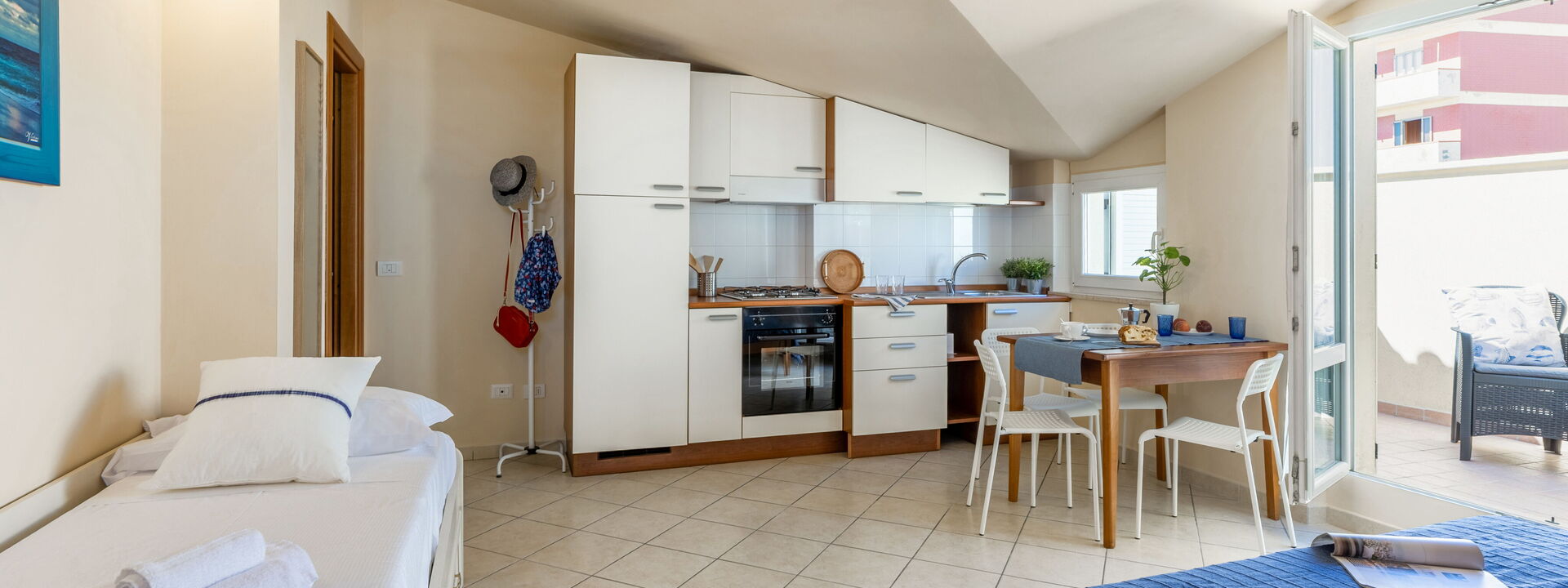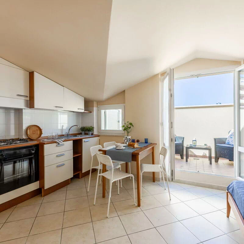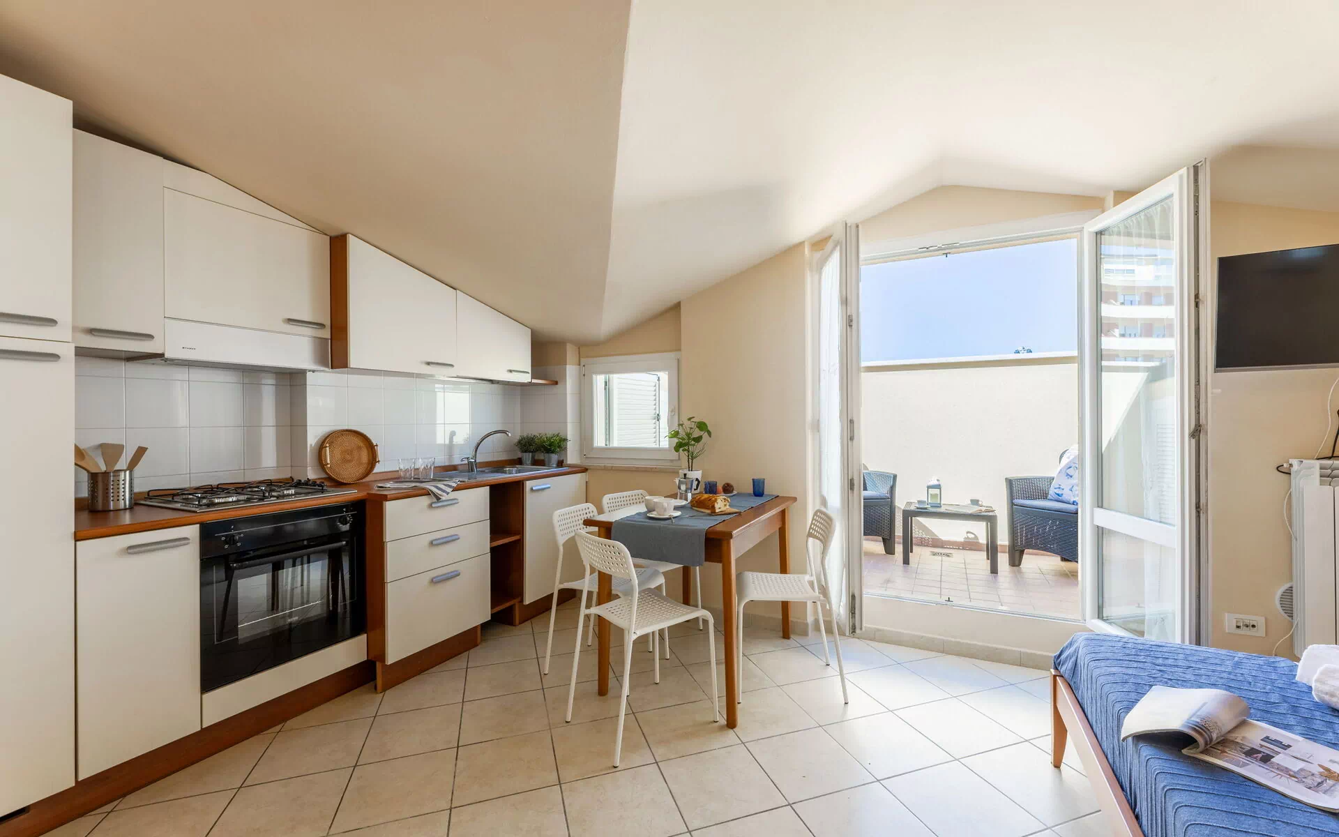 L'espace ouvert et lumineux peut accueillir quatre personnes et dispose d'une cuisine entièrement équipée, d'une salle de bain complète et d'une terrasse meublée avec table et chaises, idéale pour dîner en plein air ou se détendre au coucher du soleil. Le centre-ville, les restaurants, les bars, les supermarchés et toutes les commodités principales sont à quelques minutes à pied. Un havre de paix moderne et fonctionnel, idéal pour profiter du style de vie balnéaire de Porto Recanati.