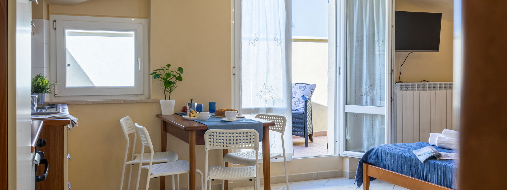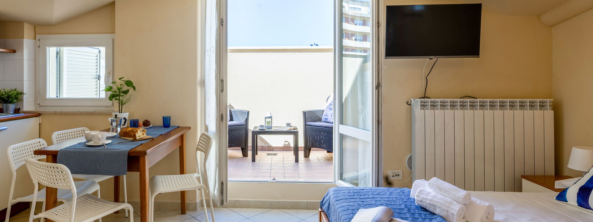L'espace ouvert, lumineux et climatisé, peut accueillir quatre personnes. Il dispose d'une cuisine entièrement équipée, d'une salle de bain complète et d'une grande terrasse meublée d'une table et de chaises, idéale pour dîner en plein air ou se détendre au coucher du soleil. Le centre-ville, les restaurants, les bars, les supermarchés et toutes les commodités principales sont à quelques minutes à pied. Un havre de paix moderne et fonctionnel, idéal pour profiter pleinement de l'escapade balnéaire de Porto Recanati.