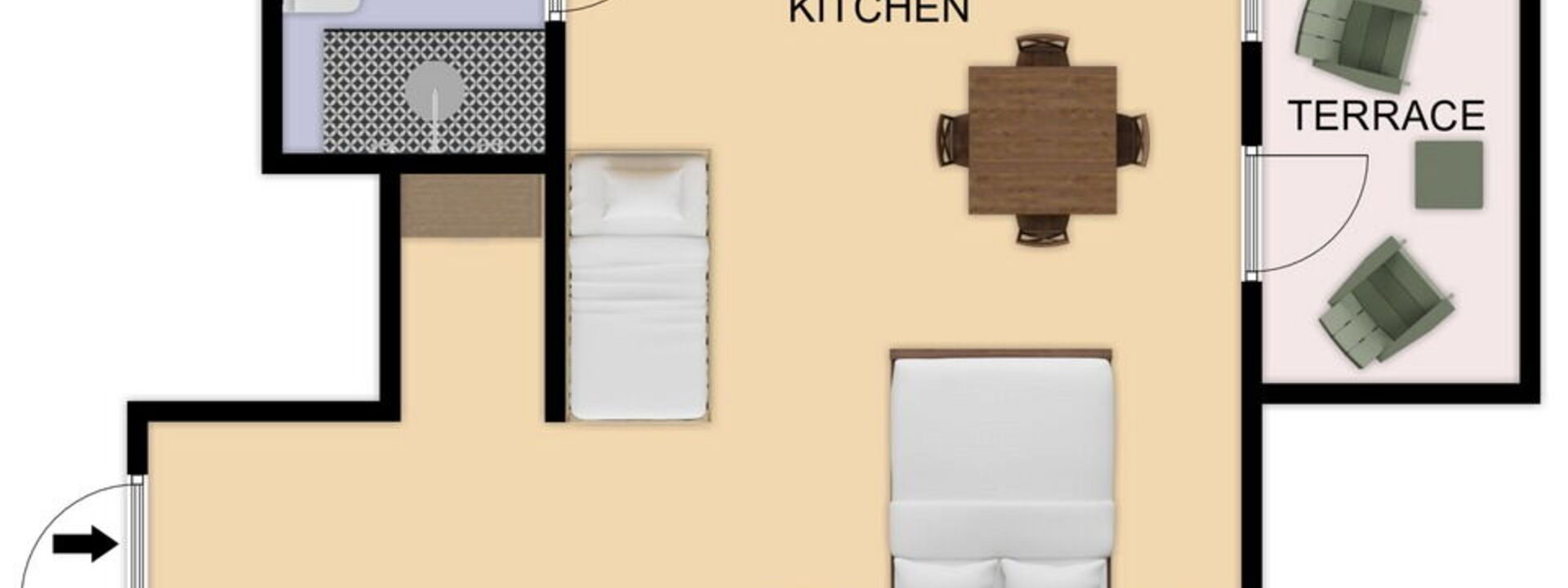 climatisation, Cuisine bien équipée, Four, Congélateur, Réfrigérateur, Internet WiFi, lit double, 2 lit à une place, Cuisinière, table à manger, TV Satellitaire, Sortie sur la terrasse, Lave-vaisselle