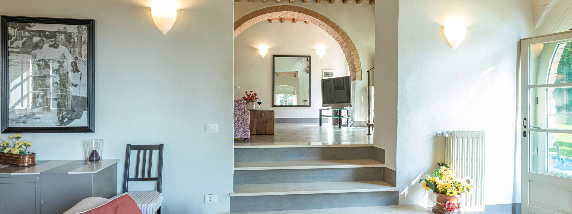 À côté de la ferme Linchiano, d'une superficie totale de 240 mètres carrés, se trouve la fascinante tour du XIIe siècle, 95 mètres carrés sur cinq niveaux. Au XVe siècle, la tour était habitée par le cartographe Paolo Toscanelli dal Pozzo, qui exerça une influence décisive sur la décision de Christophe Colomb de partir à la recherche des Indes orientales en naviguant vers l'ouest. A l'intérieur il y a une cuisine entièrement équipée avec cheminée, une chambre simple, un salon, une chambre double et une salle de bain avec douche, lavabo, WC et bidet. L'agencement sur différents niveaux est particulièrement fascinant.