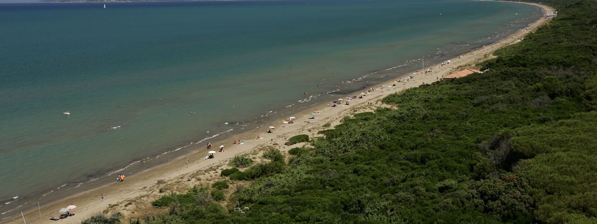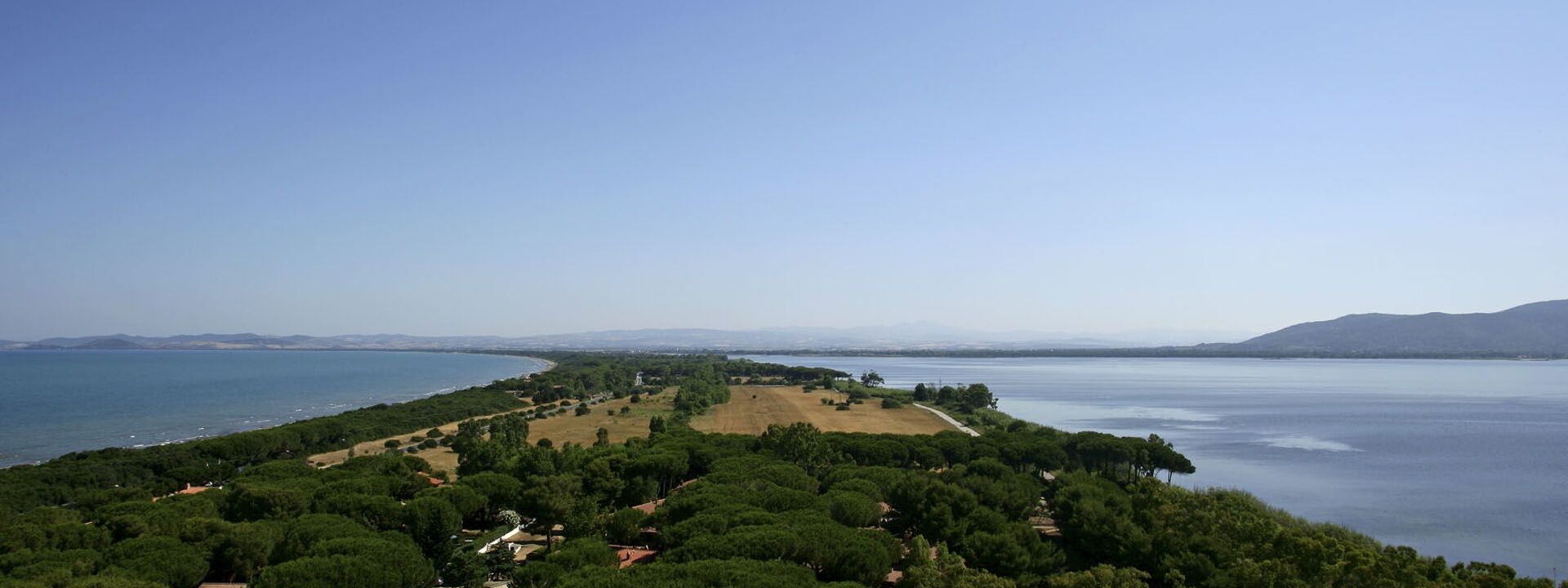 c'est une mince bande de terre surplombant la mer au pied du Monte Argentario, sa très belle plage s'étend sur sept km. sans interruption.