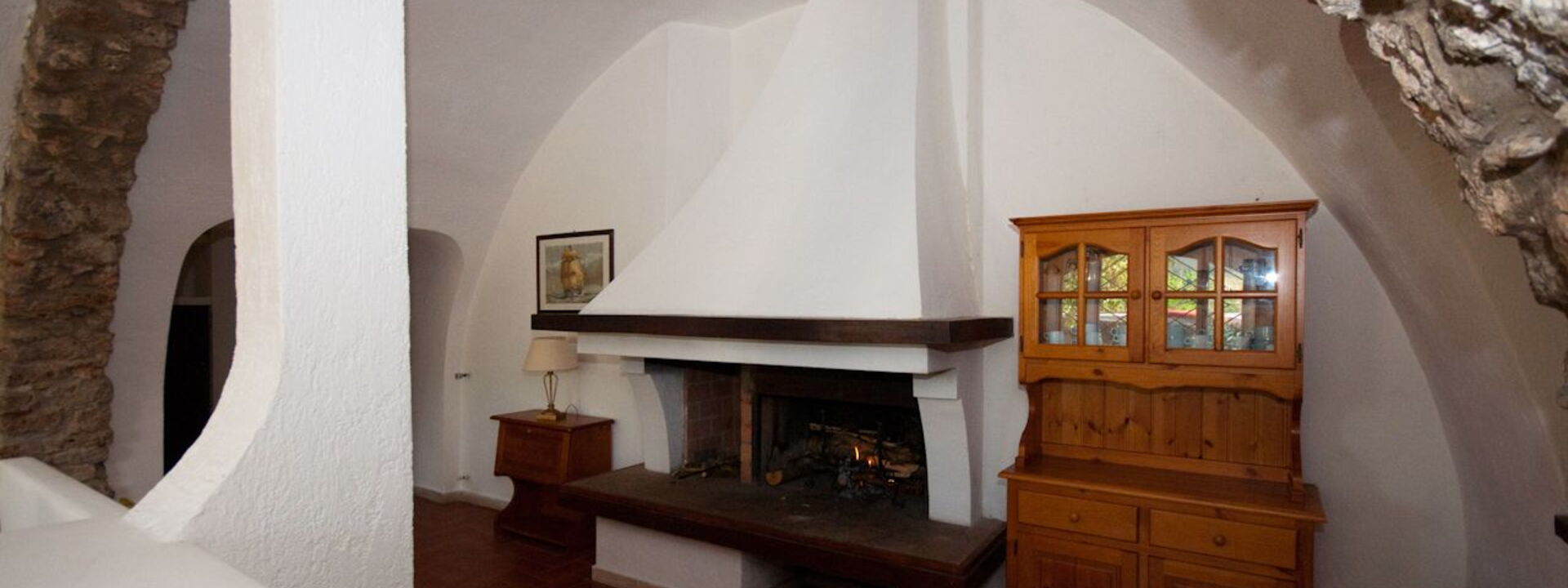 Le grand salon aux arcades en briques apparentes se caractérise par l'agréable espace détente avec cheminée meublée de canapés et fauteuils (2 fauteuils-lits); grande salle à manger avec table et chaises pour 8 personnes. Accès direct au jardin privé équipé de table et chaises d'extérieur.