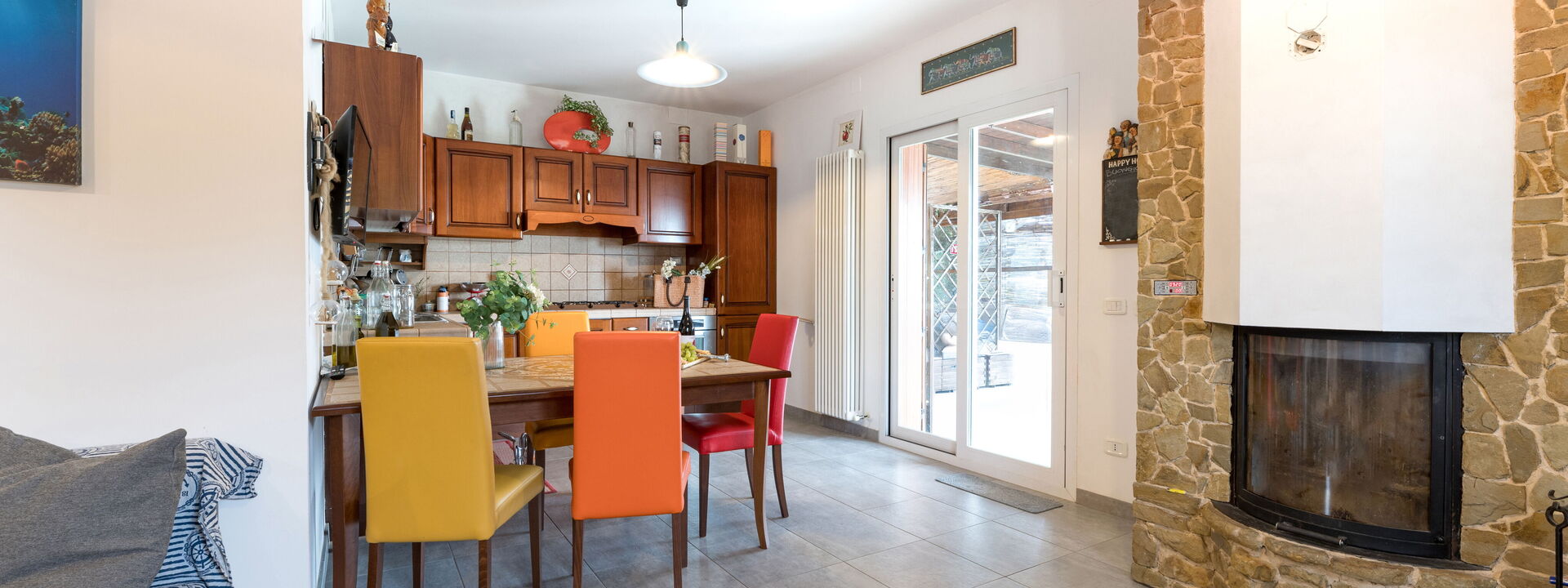 zona soggiorno con divano , tavolo da pranzo, Tv, camino