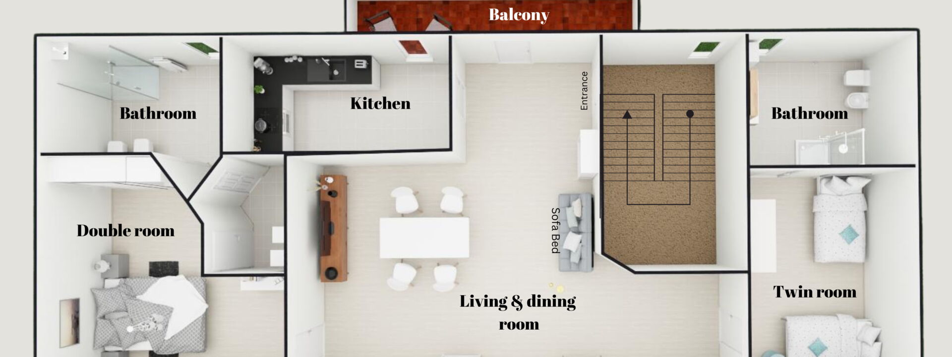 Aria condizionata, Bidet, Doccia, Internet WiFi, Lavandino, Lavatrice, 2 Letto singolo, WC
