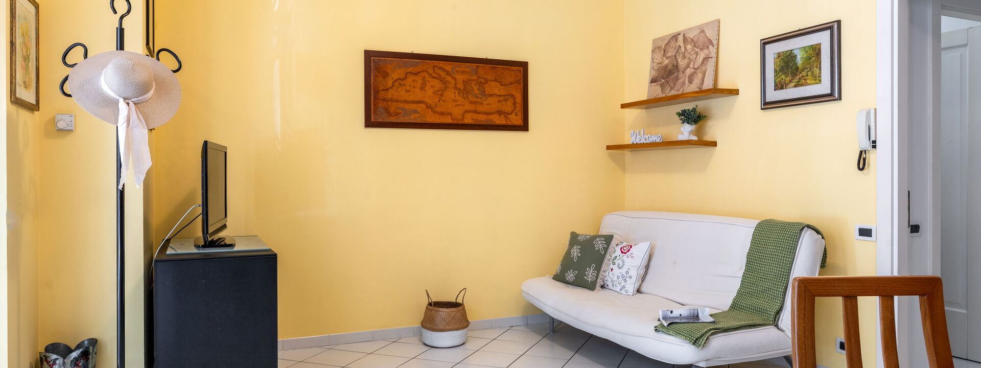 angolo soggiorno con tv e divano letto matrimoniale