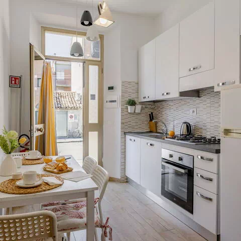 Cucina ben attrezzata, Forno, Freezer, Frigo, Internet WiFi, Lavastoviglie, Lavatrice, Macchina da caffè (Italiana), Microonde, Piano Cottura, Rilevatore di fumo, Tavolo da pranzo