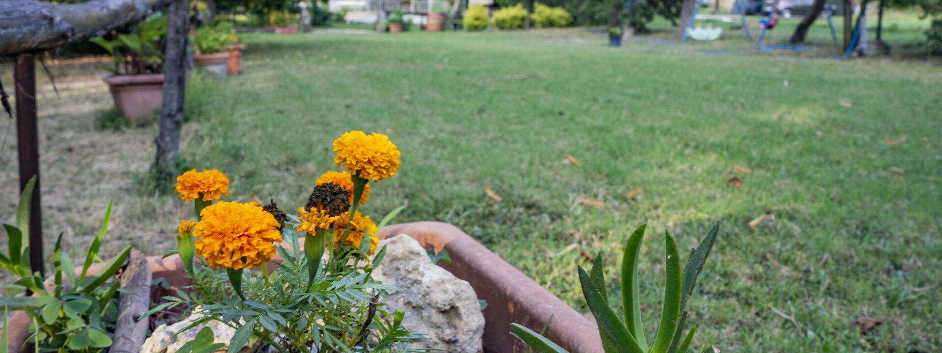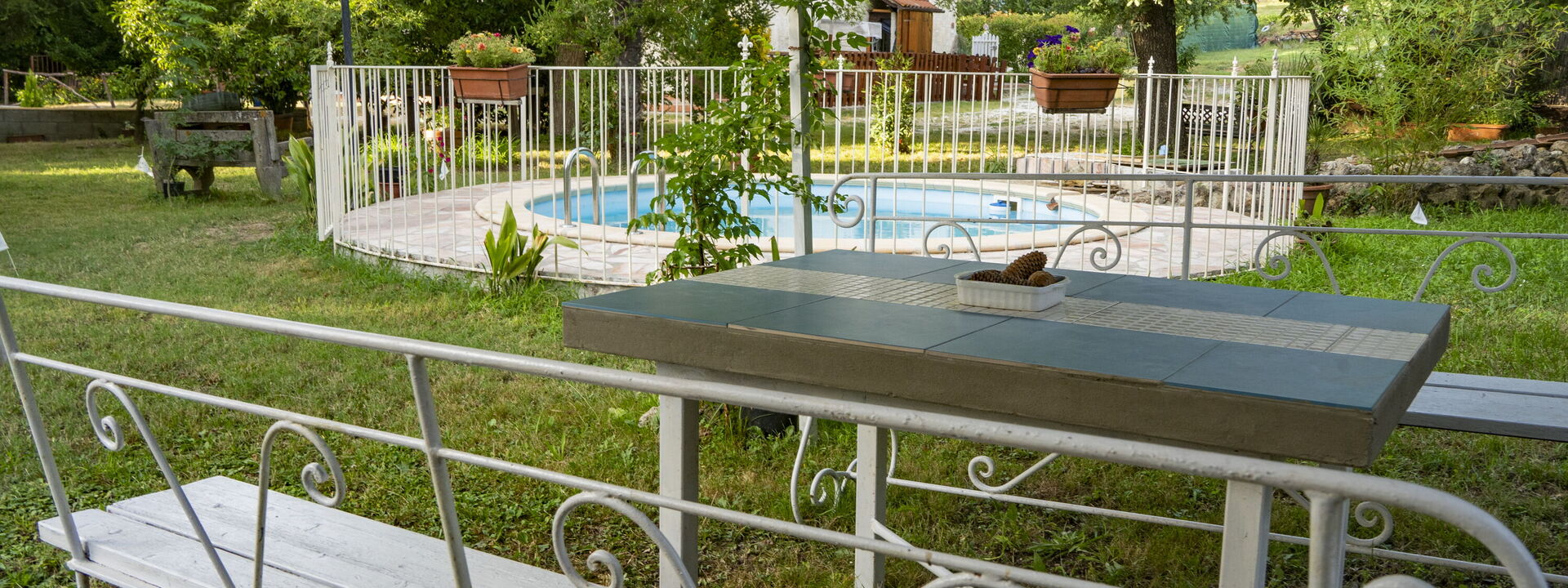 giardino attrezzato con piscina ad uso esclusivo