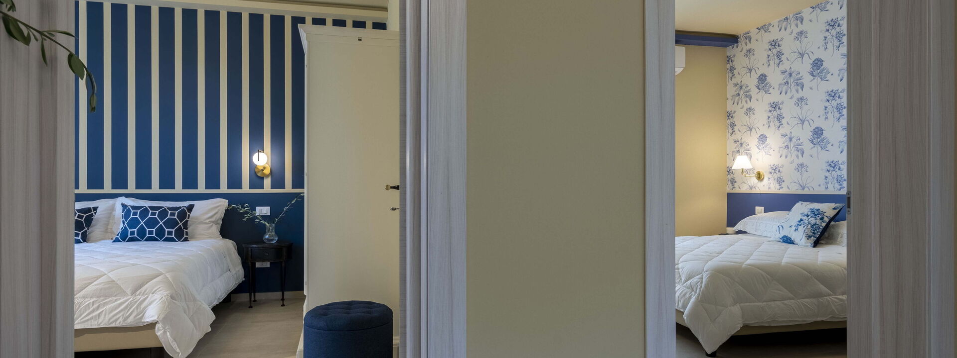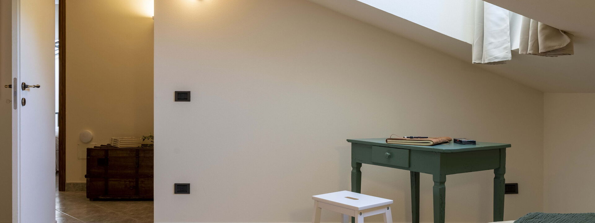 1 camera con letto matrimoniale e un letto singolo attrezzata con armadio, comodini e scrivania