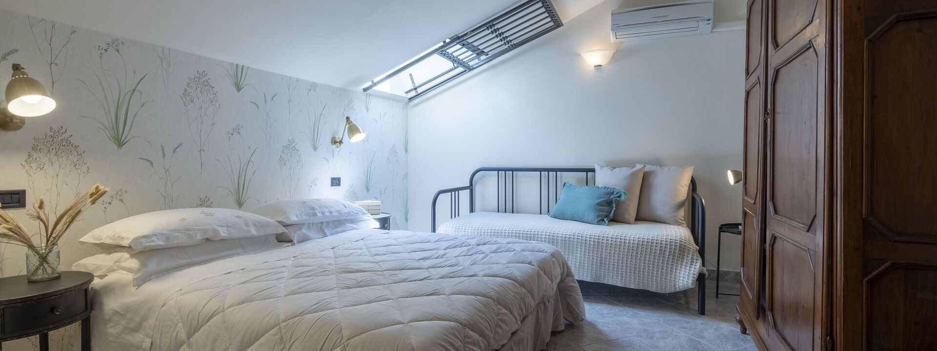 1 camera con letto matrimoniale, un letto singolo, armadio, comodini
