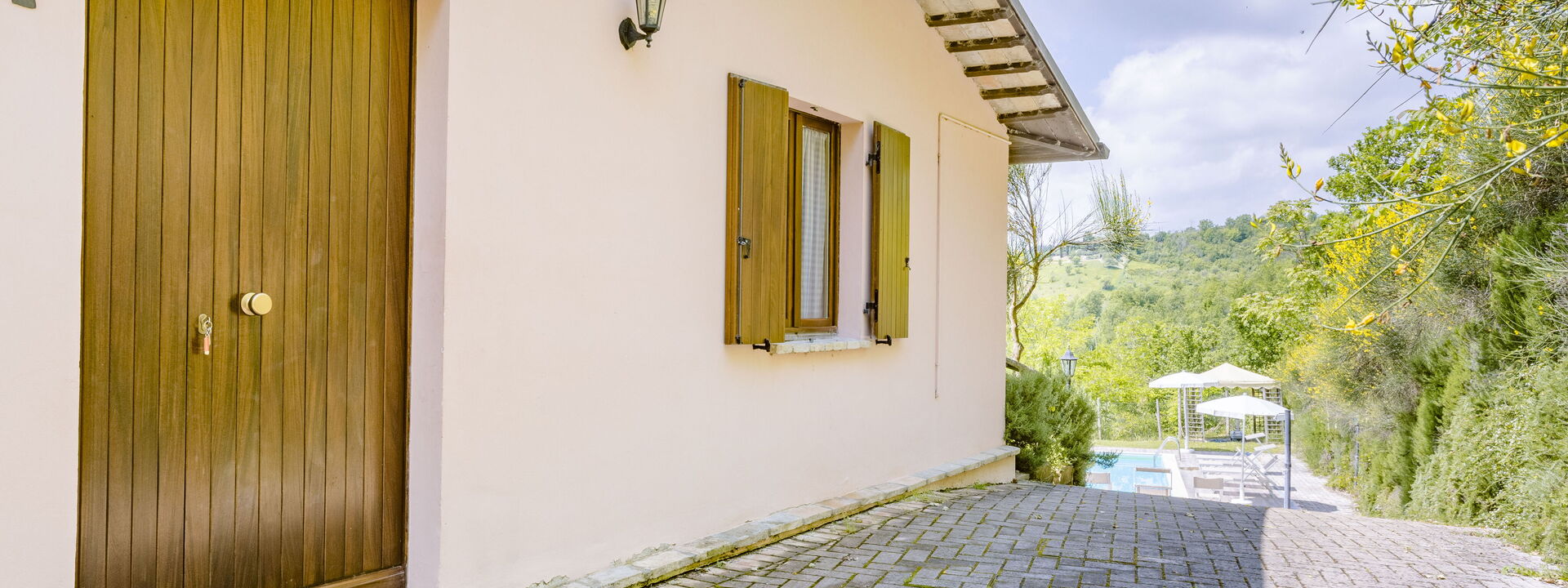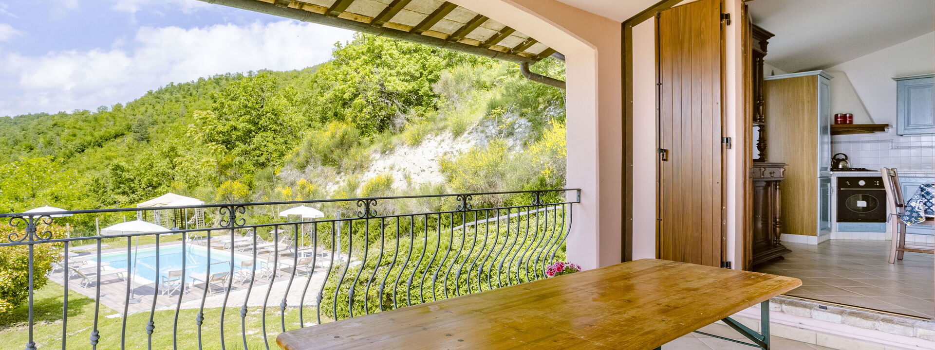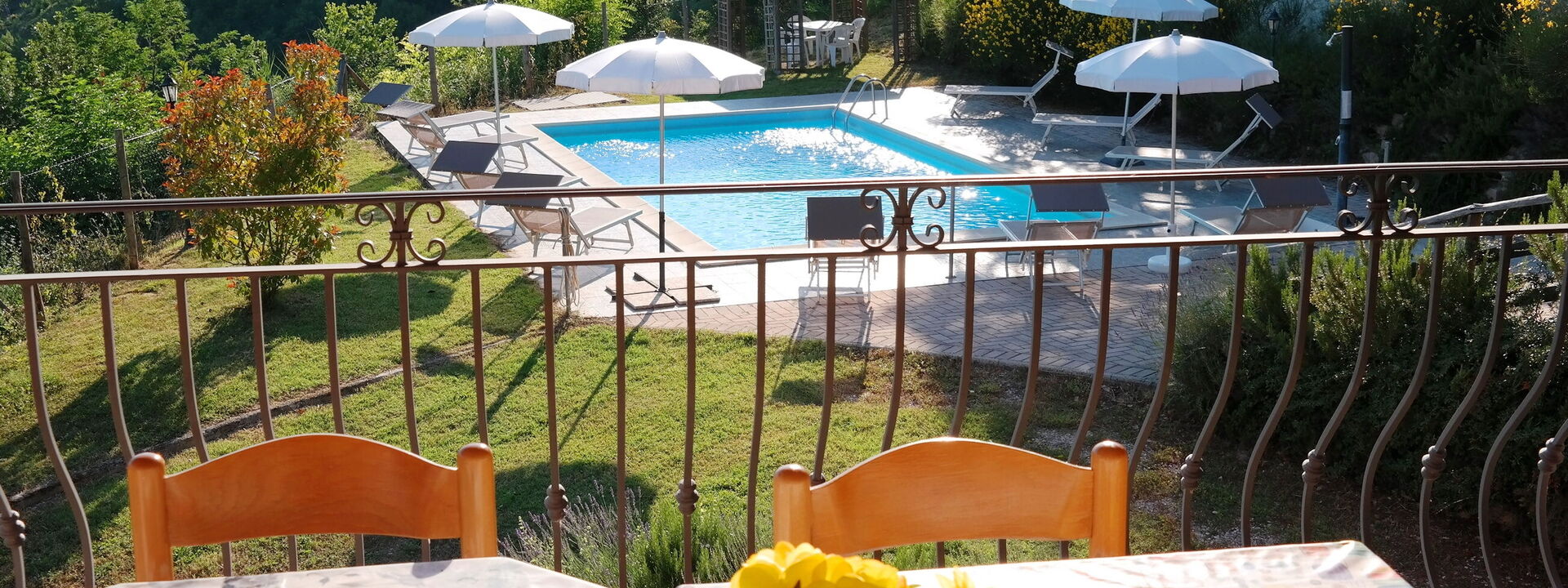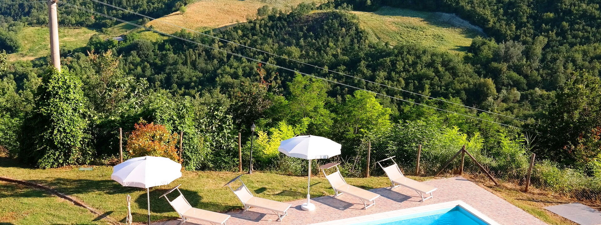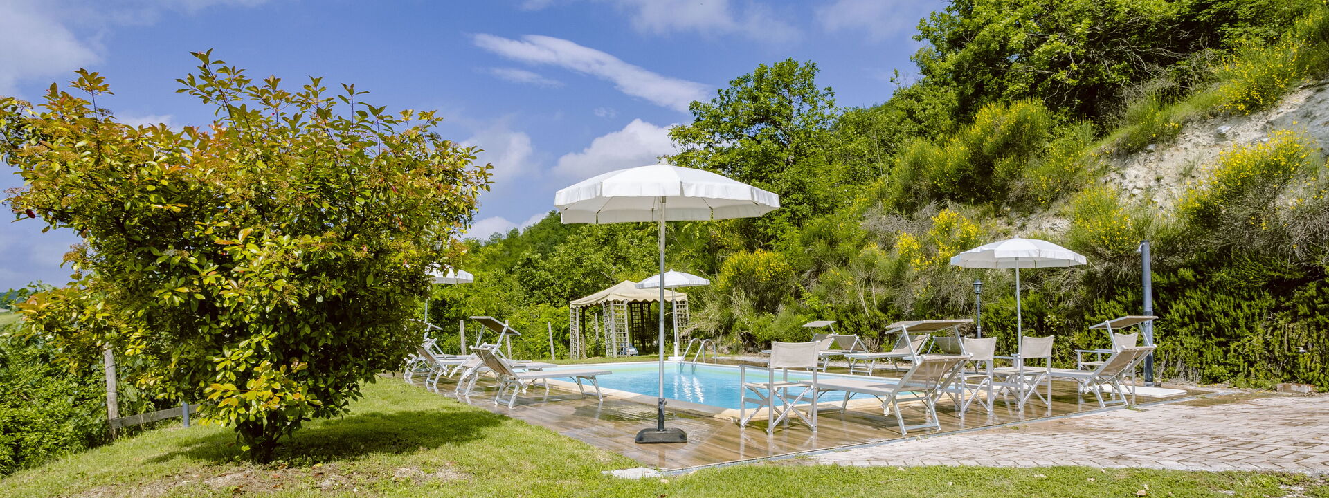The swimming pool at Villa Altavista offers a breathtaking view over the surrounding hills and mountains. Equipped with comfortable sun loungers and umbrellas, it is the perfect place to relax under the sun. An exclusive corner where beauty and comfort meet for unforgettable moments.