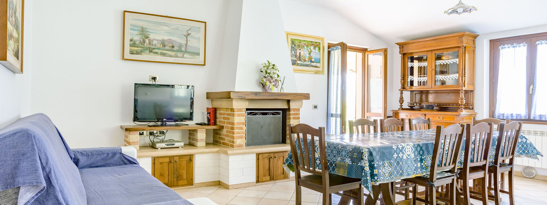 The interiors of Villa Altavista offer spacious and functional areas, divided into two housing units for a total of 16 beds. On the ground floor there is a living room with kitchenette, three bedrooms and a bathroom, while on the first floor there is a living room, three bedrooms and two bathrooms. Bright rooms and panoramic terraces make the villa welcoming and ideal for families and groups.