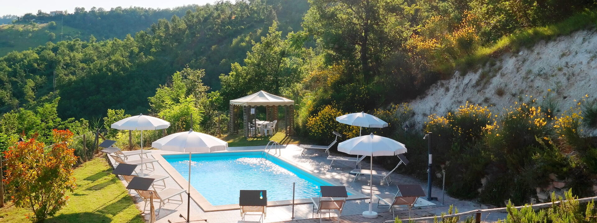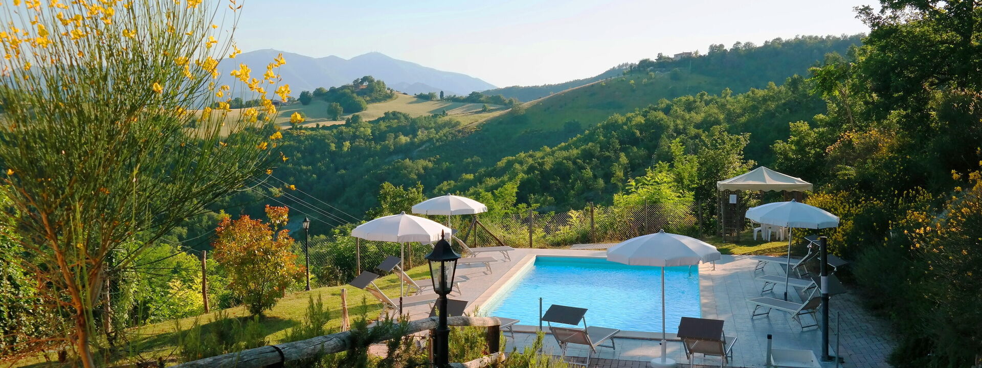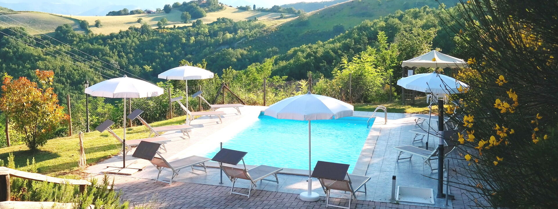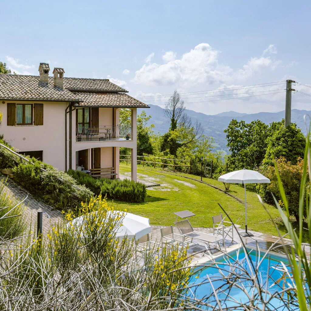 Villa Altavista is an elegant residence nestled among the hills of Acqualagna, offering accommodation for up to 16 guests across two floors. The villa combines modern comfort with authentic atmosphere, featuring spacious interiors and tastefully designed rooms. At the heart of the property lies the splendid swimming pool, from which guests can enjoy breathtaking panoramic views of the surrounding hills and mountains. Every moment spent here becomes a unique experience: from radiant sunrises to enchanting sunsets, the gaze is drawn to the infinite horizon. Villa Altavista is the ideal retreat for those seeking relaxation, beauty, and conviviality—an exclusive oasis in the Marche region where nature and harmony blend perfectly.