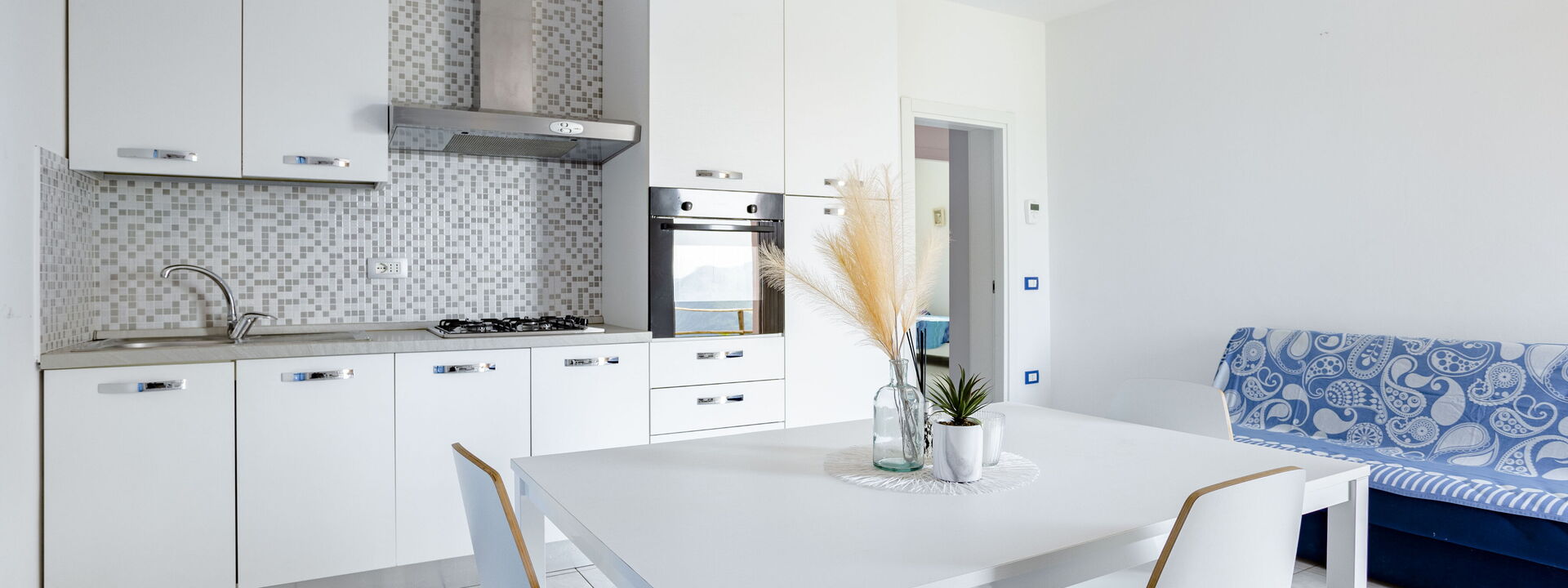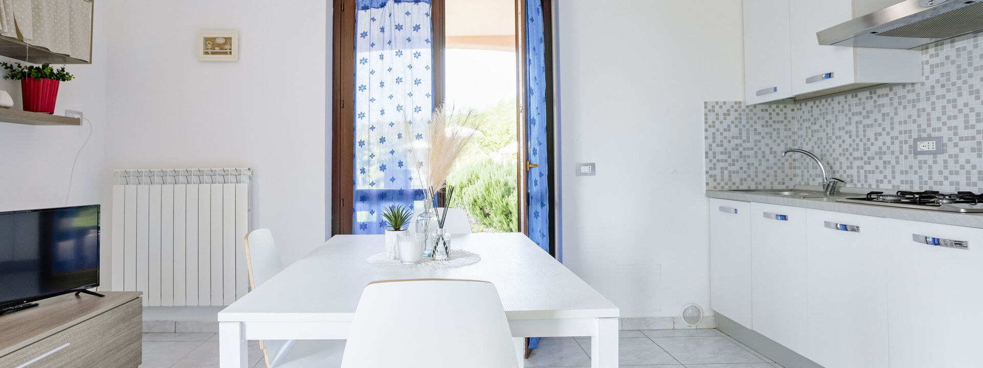 Well Equipped Kitchen, Sofa, Oven, Freezer, Fridge, WiFi Internet, Italian Coffee Machine, Stove Top, Dining Table, Satellite TV, Exit to the terrace