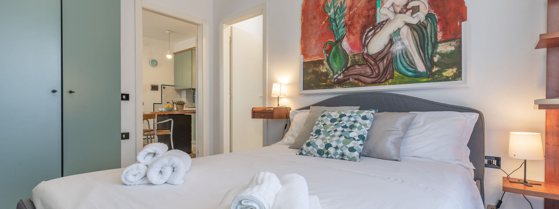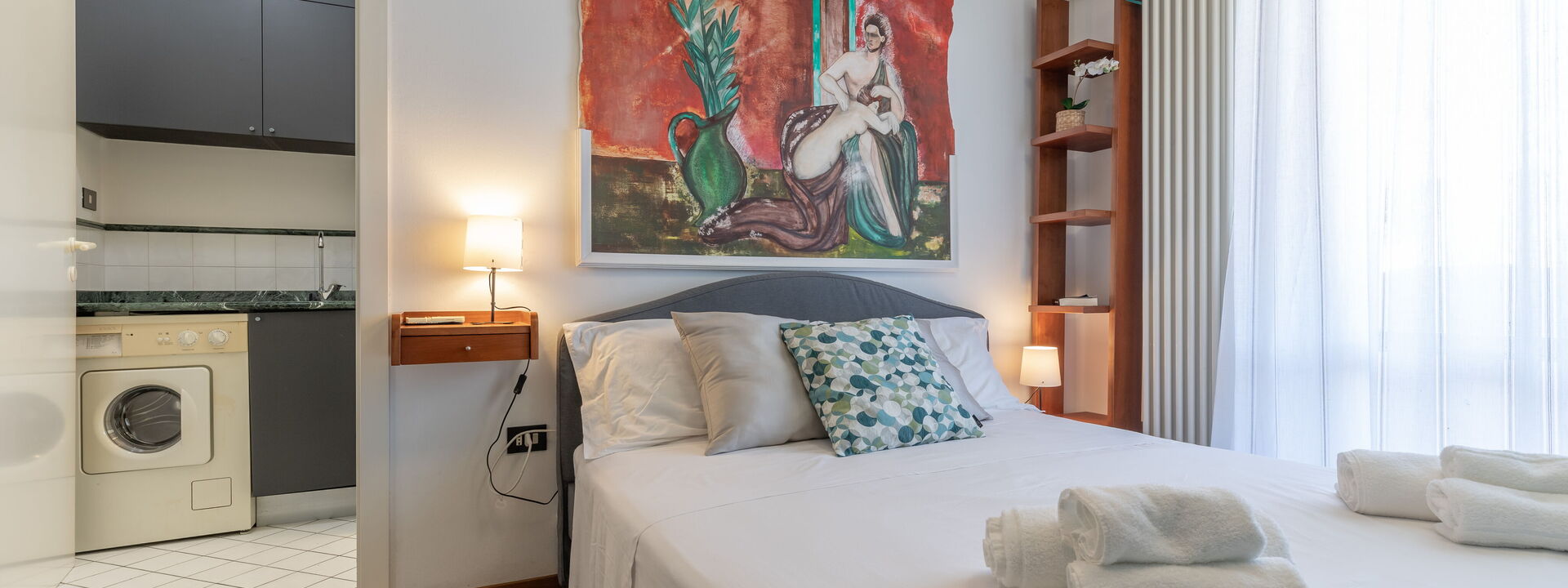 Air Conditioning, American Coffee Machine, Dining Table, Exit to the balcony, Freezer, Fridge, Italian Coffee Machine, Oven, Satellite TV, Sofa Bed Double, Toaster, Well Equipped Kitchen, WiFi Internet, Working Desk, Microwave