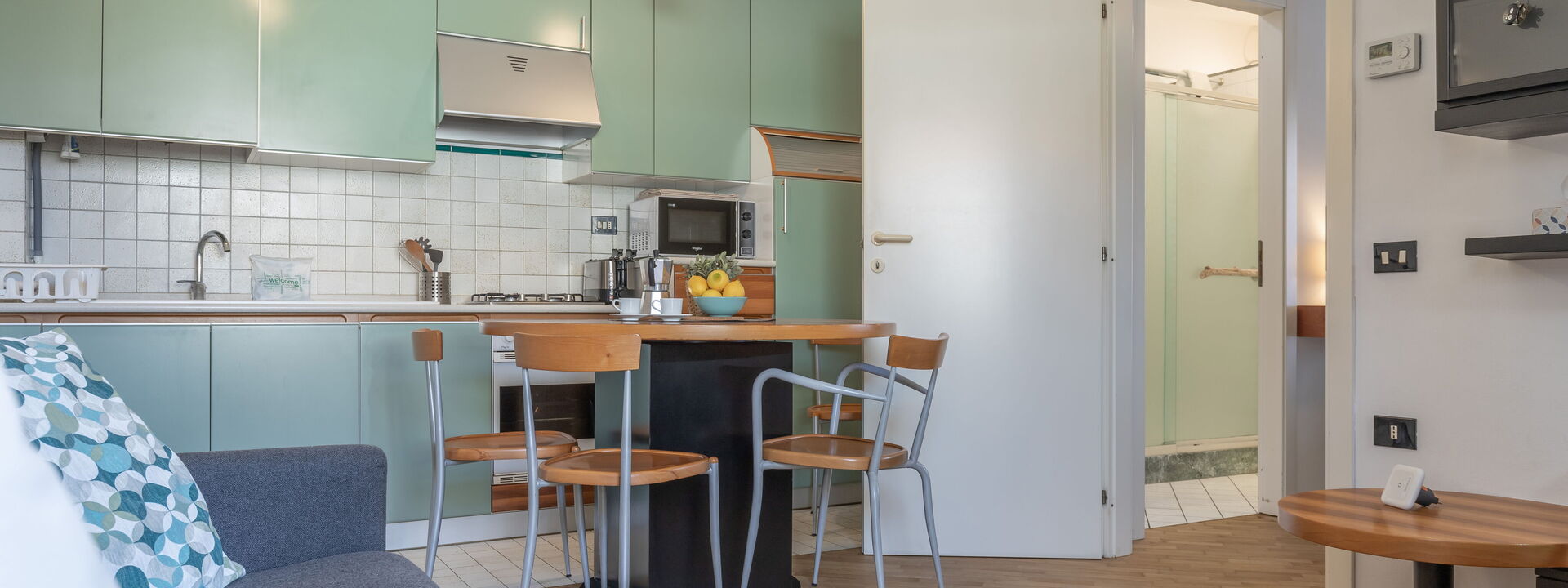 Appartamento fornito di tutto il necessario, situato in una posizione ottima e a due minuti a piedi dal mare. Un po’ stretta per dormirci in 4 adulti, per il resto super consigliata.