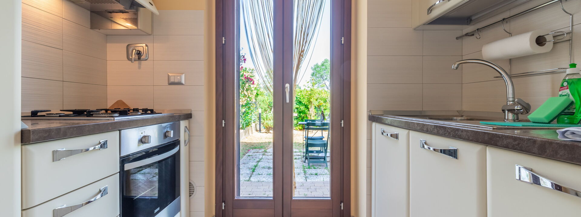 fully equipped kitchen with patio doors to access the rear garden of the house