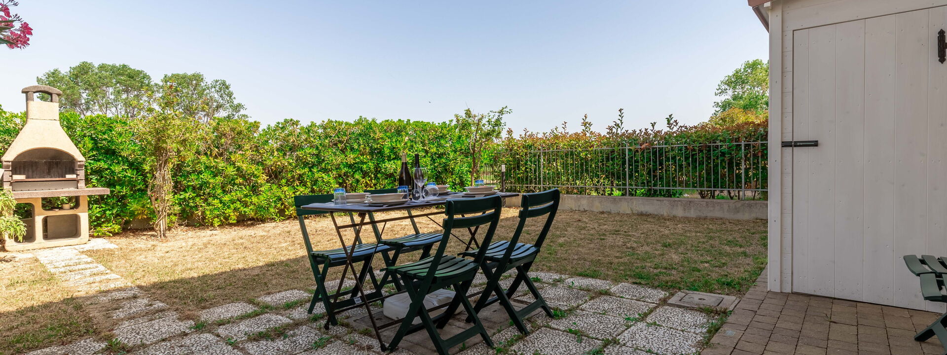 Guests also have access to a large, completely fenced-in garden equipped with tables, chairs and a barbecue for outdoor dining.