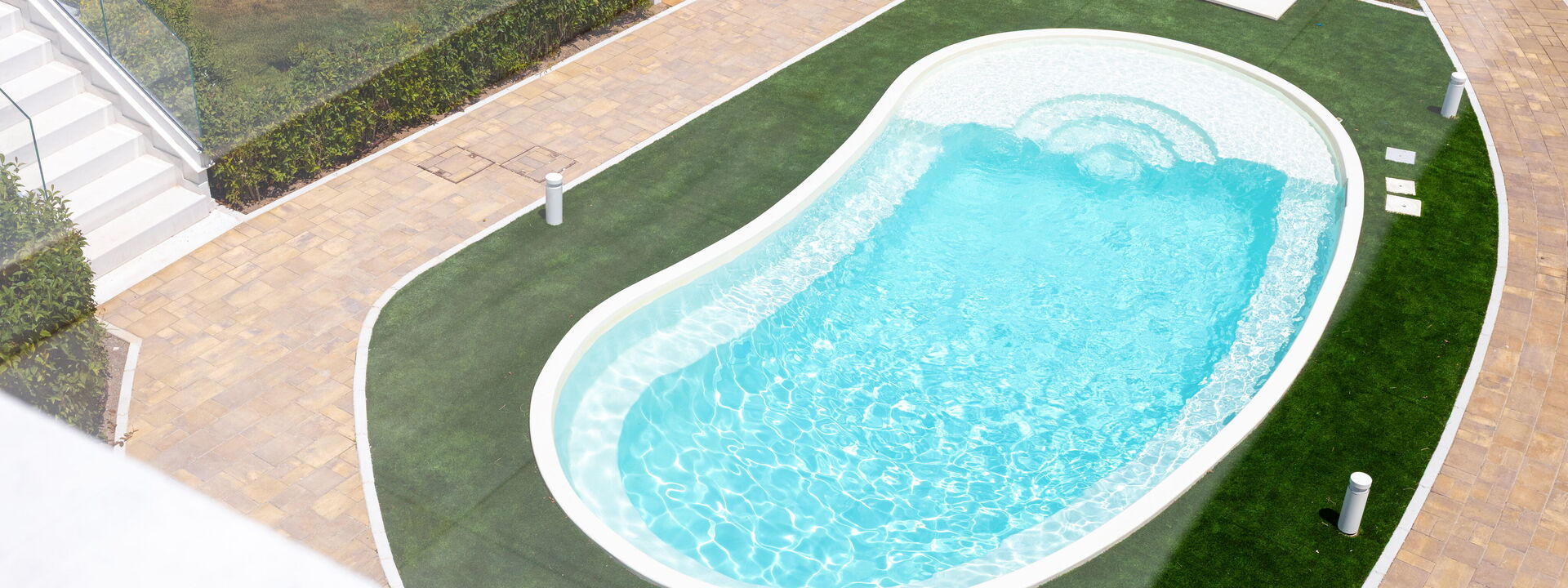 Shared with 5 other apartments, an elegant swimming pool to cool off on hot summer days
