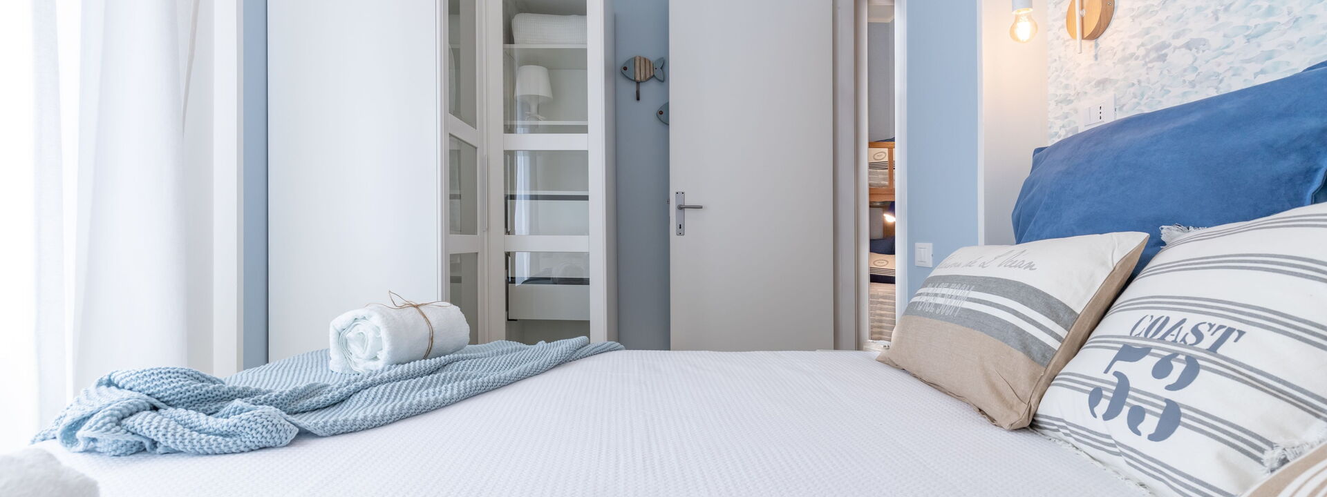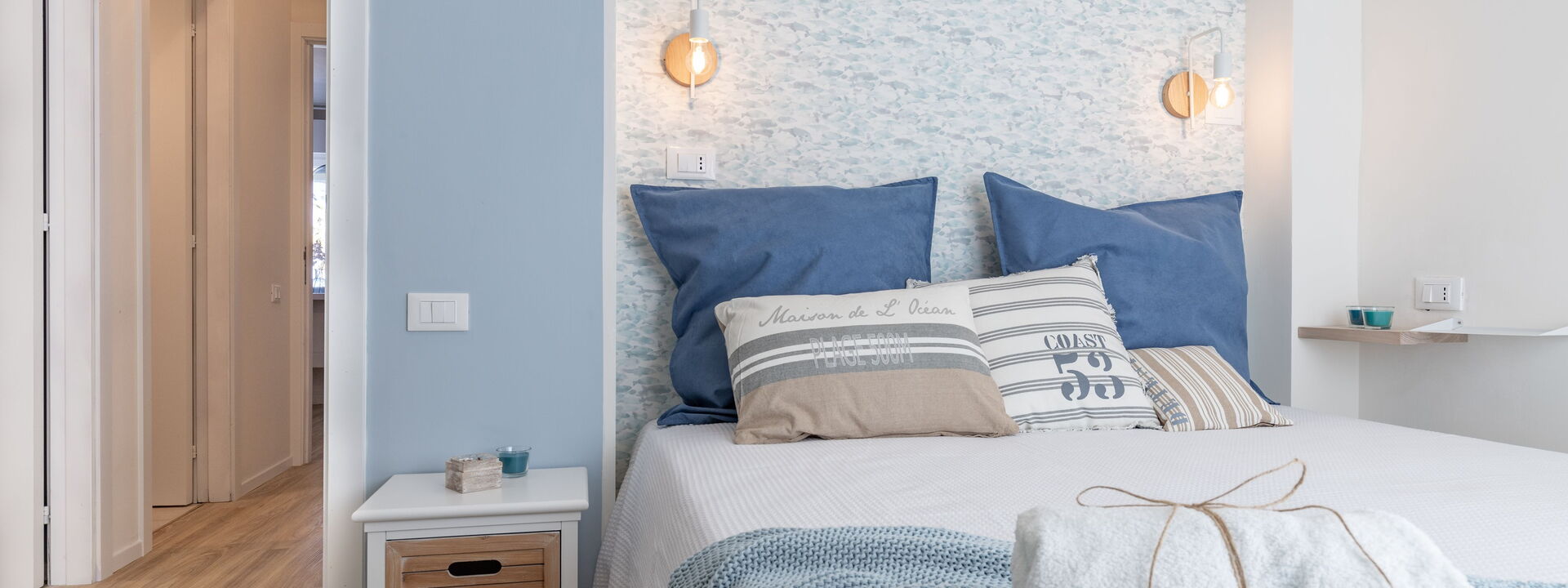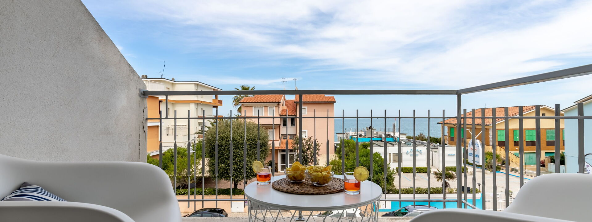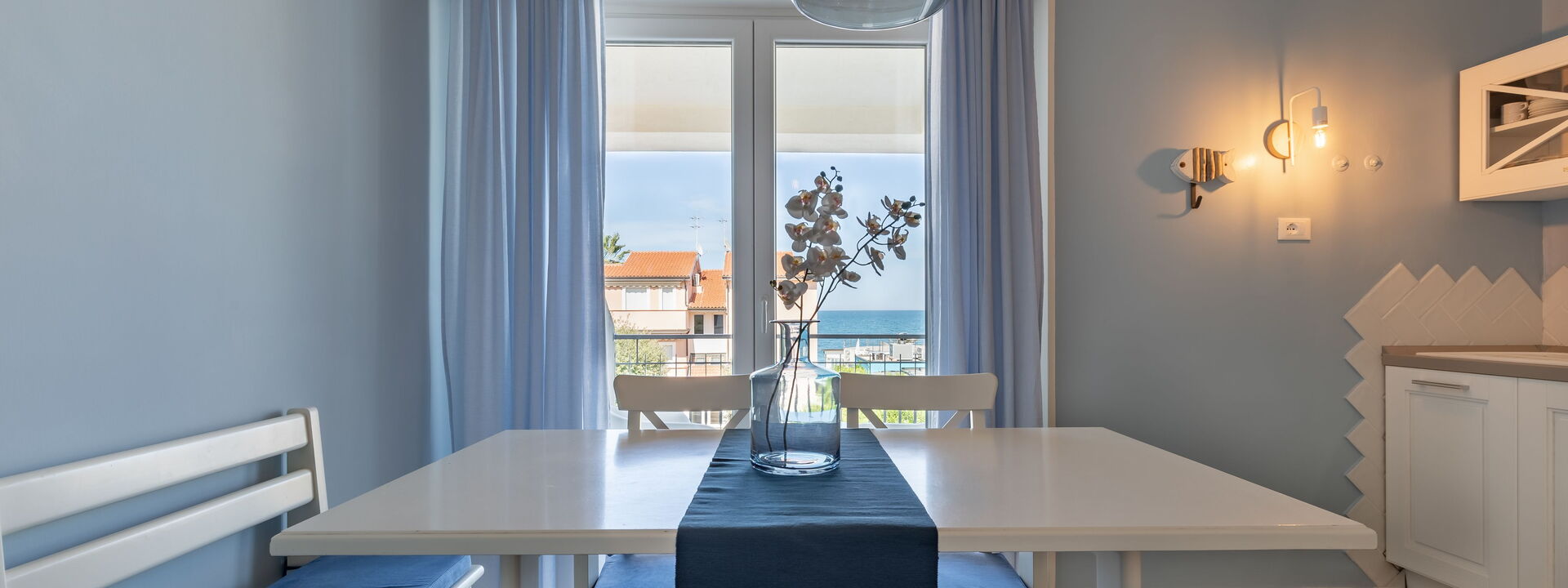 Delightful house on the sea, ideal for couples and families who want to spend their holidays on the Conero Riviera. The apartment, renovated and furnished in a marine style, is in the center of the Marcelli district of Numana. The beach is located in front of the house and the services are within 100 meters. It has a terrace overlooking the Conero.