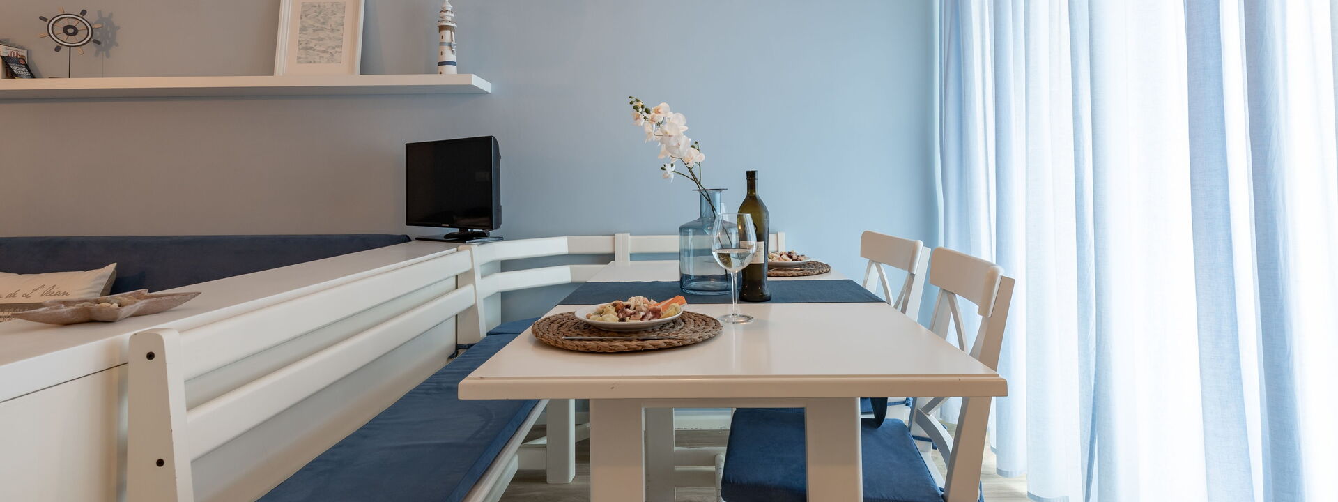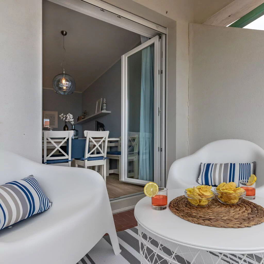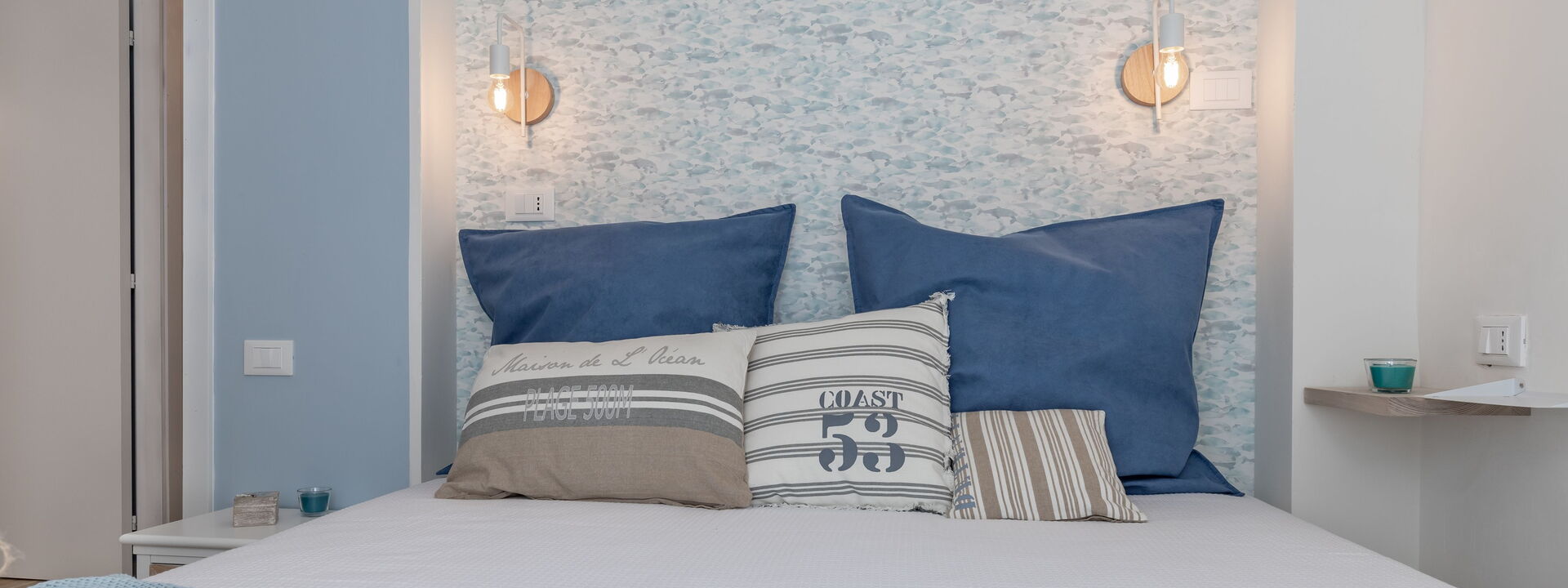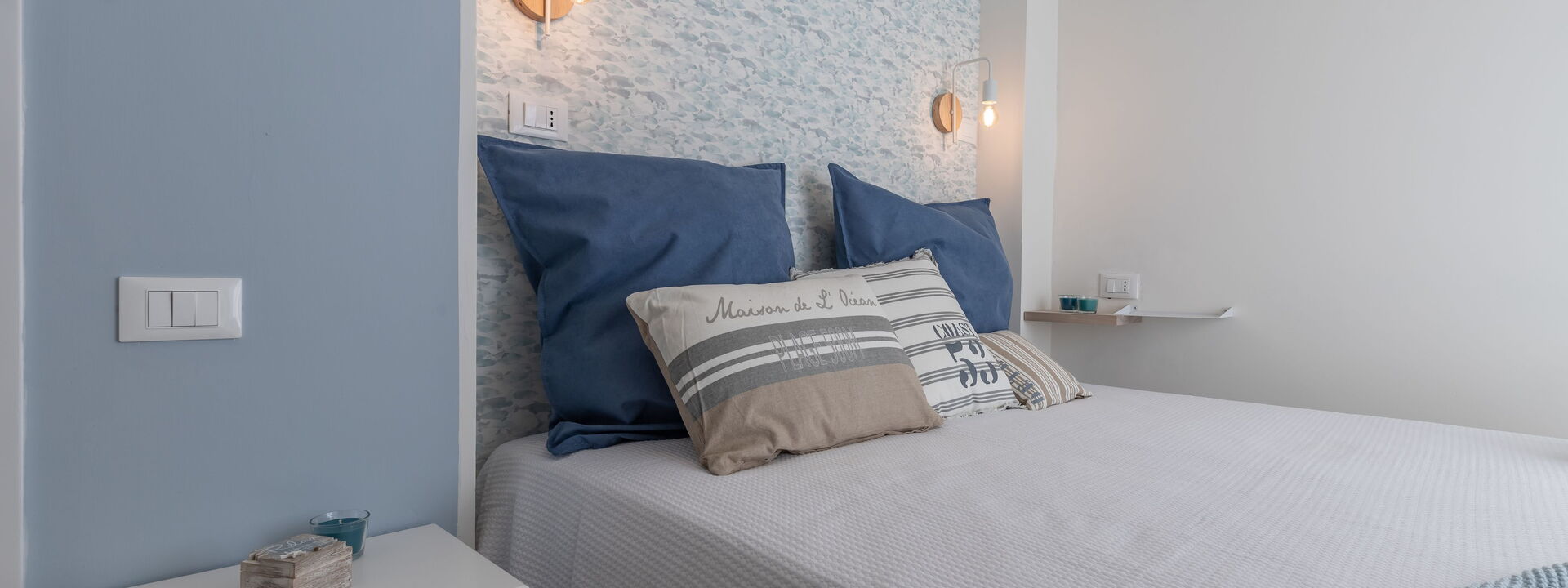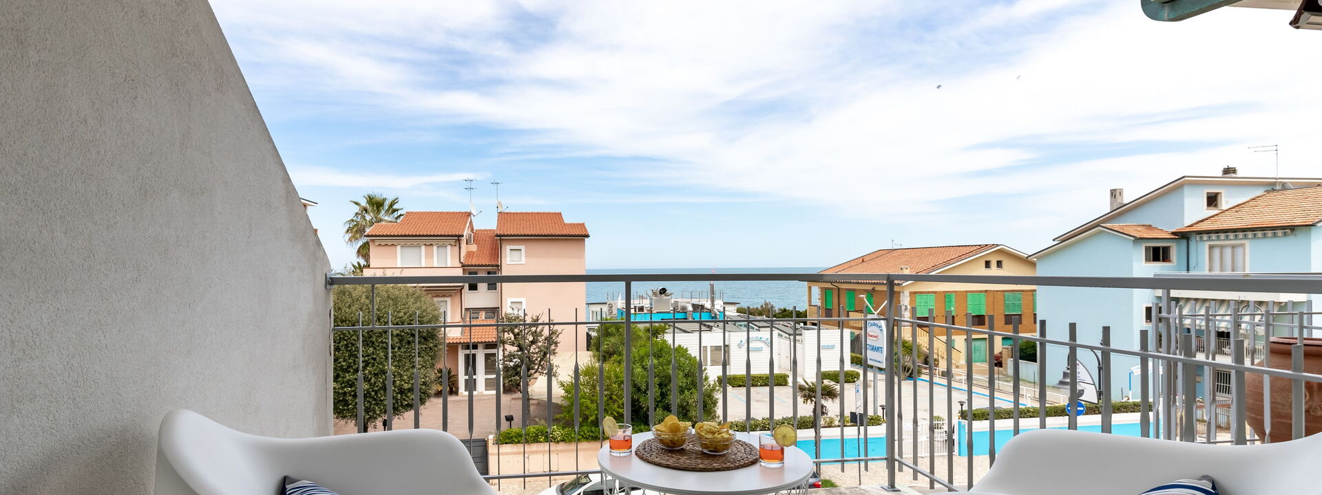 Delightful house on the sea, ideal for couples and families who want to spend their holidays on the Conero Riviera. The apartment, renovated and furnished in a marine style, is in the center of the Marcelli district of Numana. The beach is located in front of the house and the services are within 100 meters. It has a terrace overlooking the Conero.