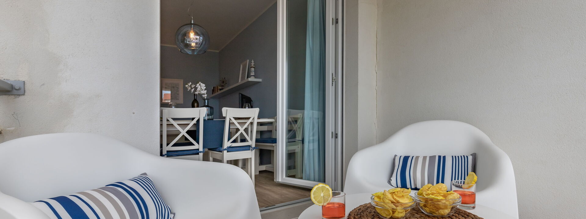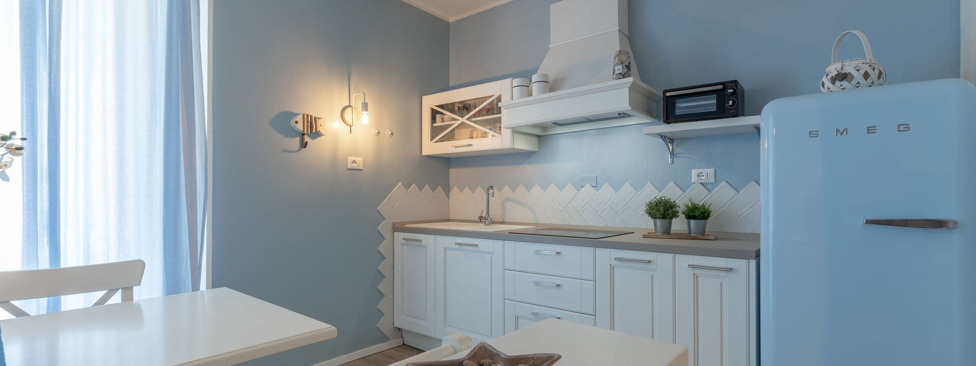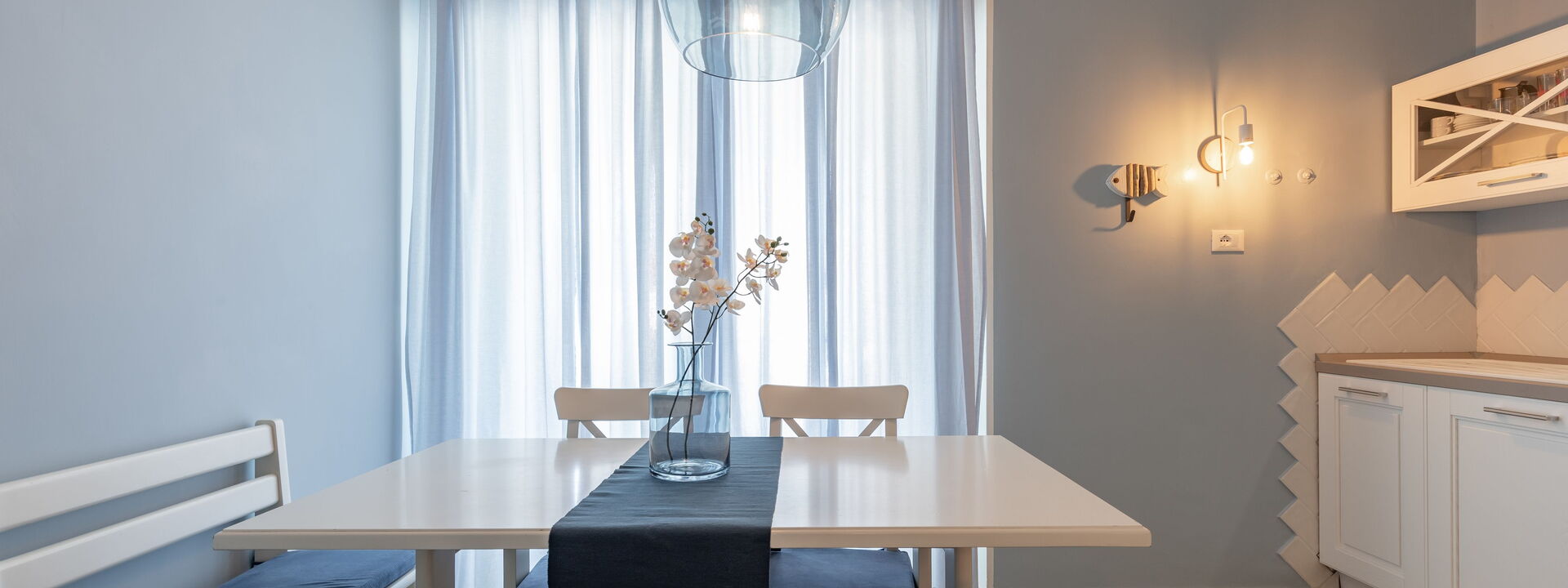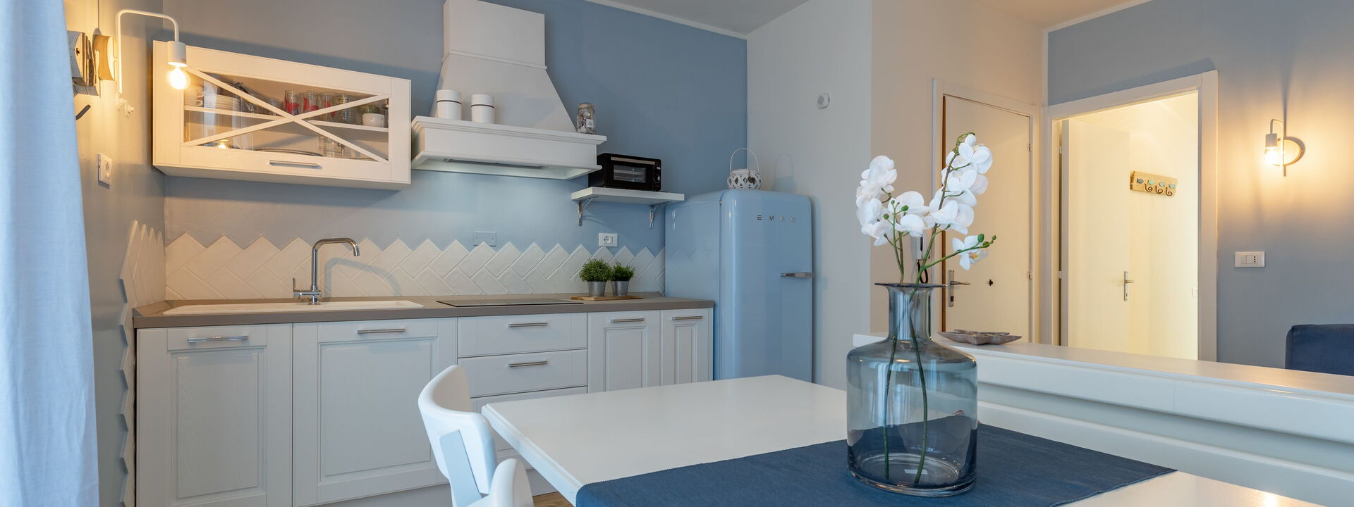 Delightful house on the sea, ideal for couples and families who want to spend their holidays on the Conero Riviera. The apartment, renovated and furnished in a marine style, is in the center of the Marcelli district of Numana. The beach is located in front of the house and the services are within 100 meters. It has a terrace overlooking the Conero.