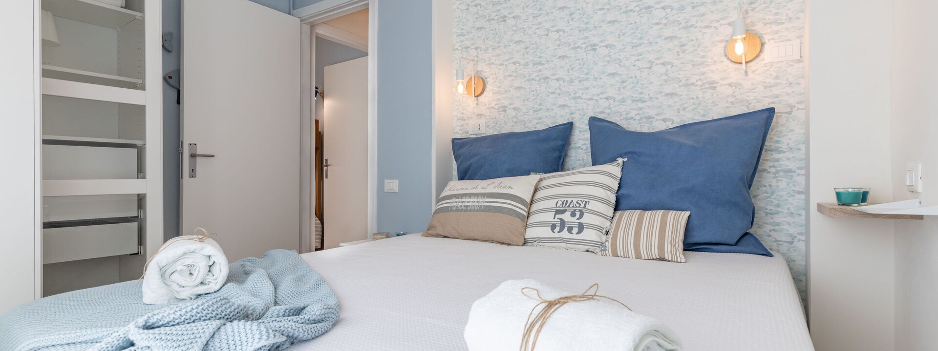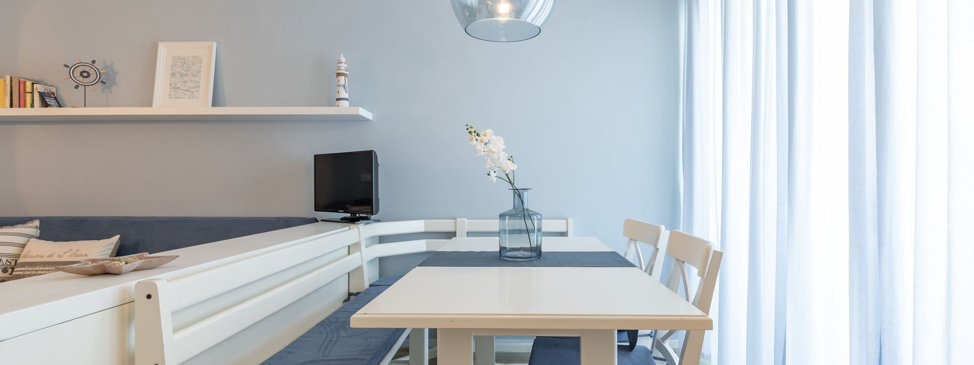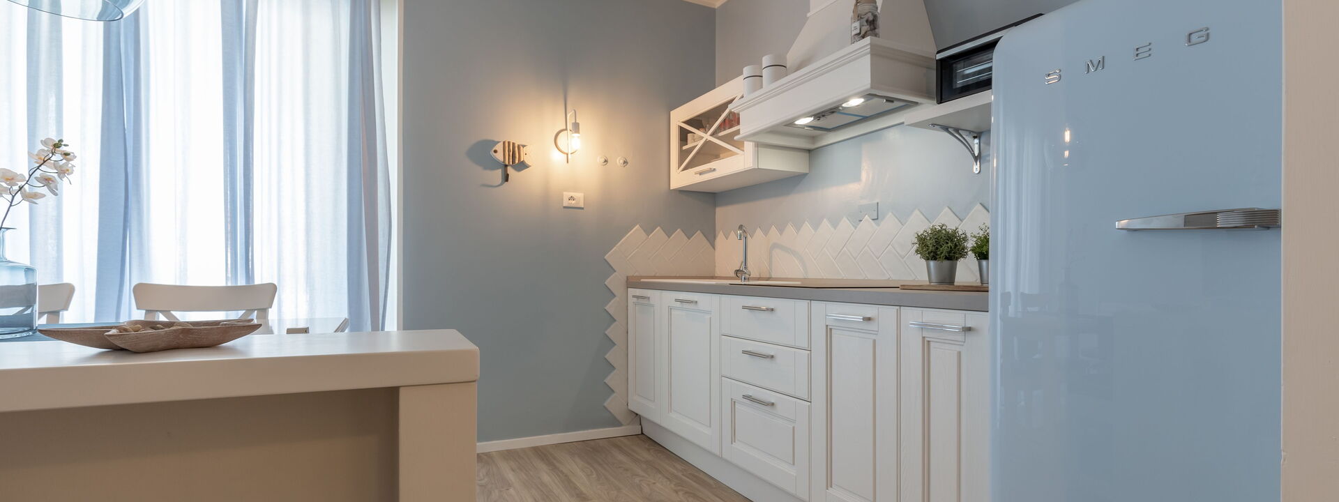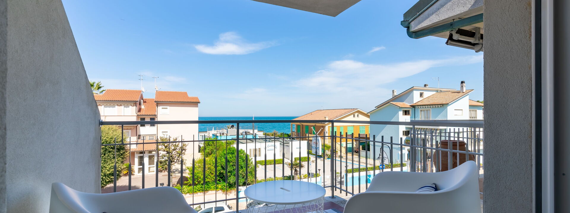 Delightful house on the sea, ideal for couples and families who want to spend their holidays on the Conero Riviera. The apartment, renovated and furnished in a marine style, is in the center of the Marcelli district of Numana. The beach is located in front of the house and the services are within 100 meters. It has a terrace overlooking the Conero.