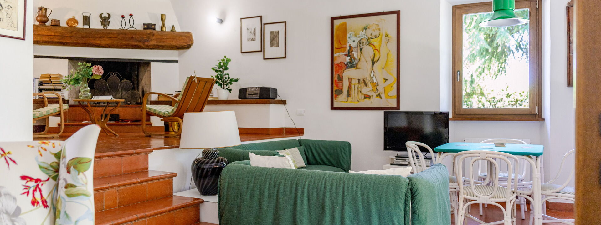 Fireplace, Well Equipped Kitchen, Sofa, Oven, Freezer, Fridge, WiFi Internet, Dishwasher, Washing Machine, Italian Coffee Machine, Microwave, Stove Top, Armchair, Smoke Detector, Dining Table, Satellite TV, Exit to the garden, Exit to the patio