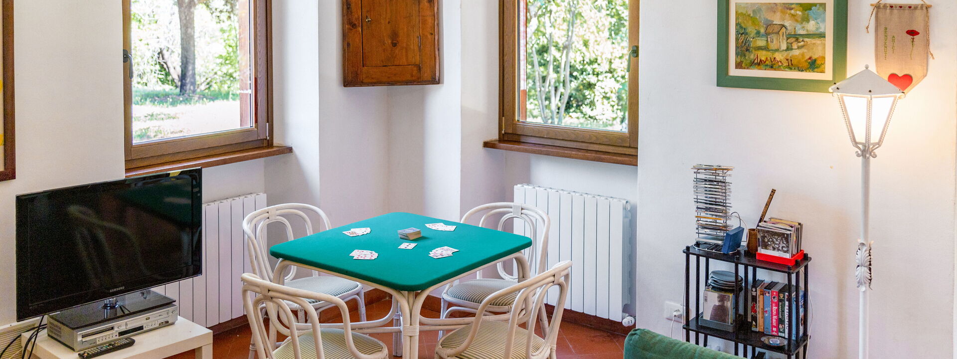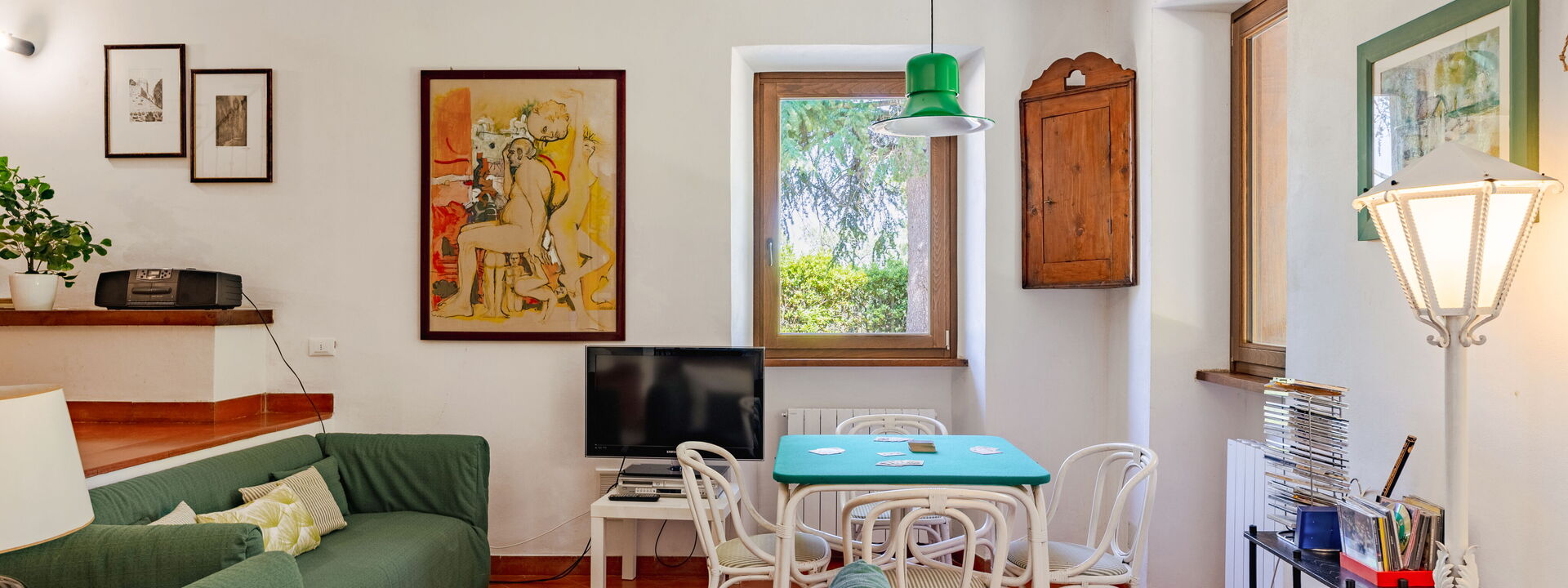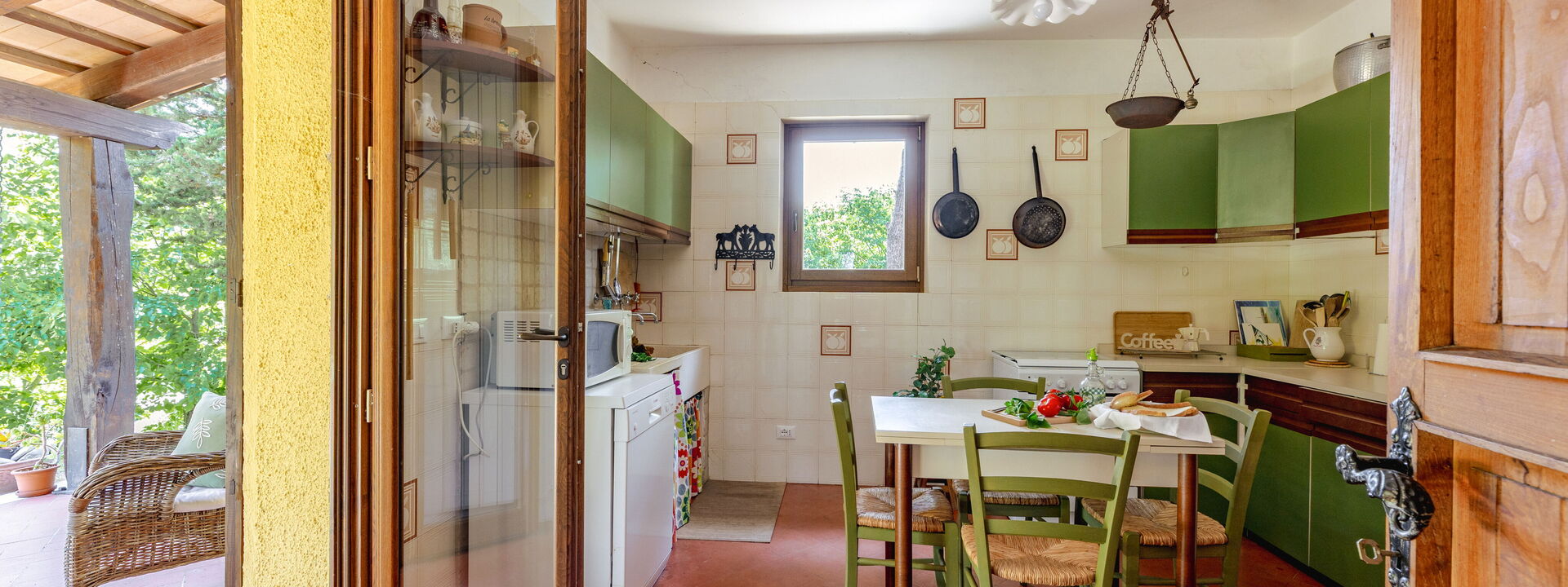 The spacious outdoor area is one of its highlights. The large garden, equipped with a barbecue, tables, and chairs, is ideal for outdoor dining in the tranquility of the countryside. Completing the experience is a beautiful panoramic terrace, perfect for relaxing and enjoying the surrounding landscape.