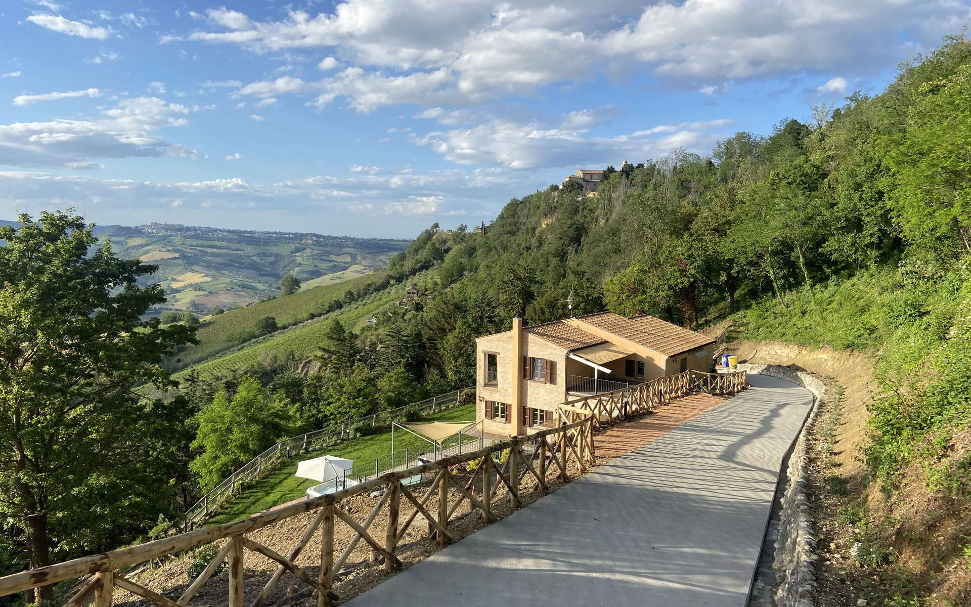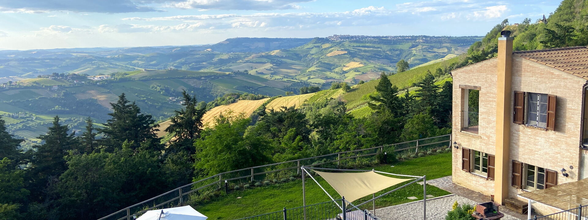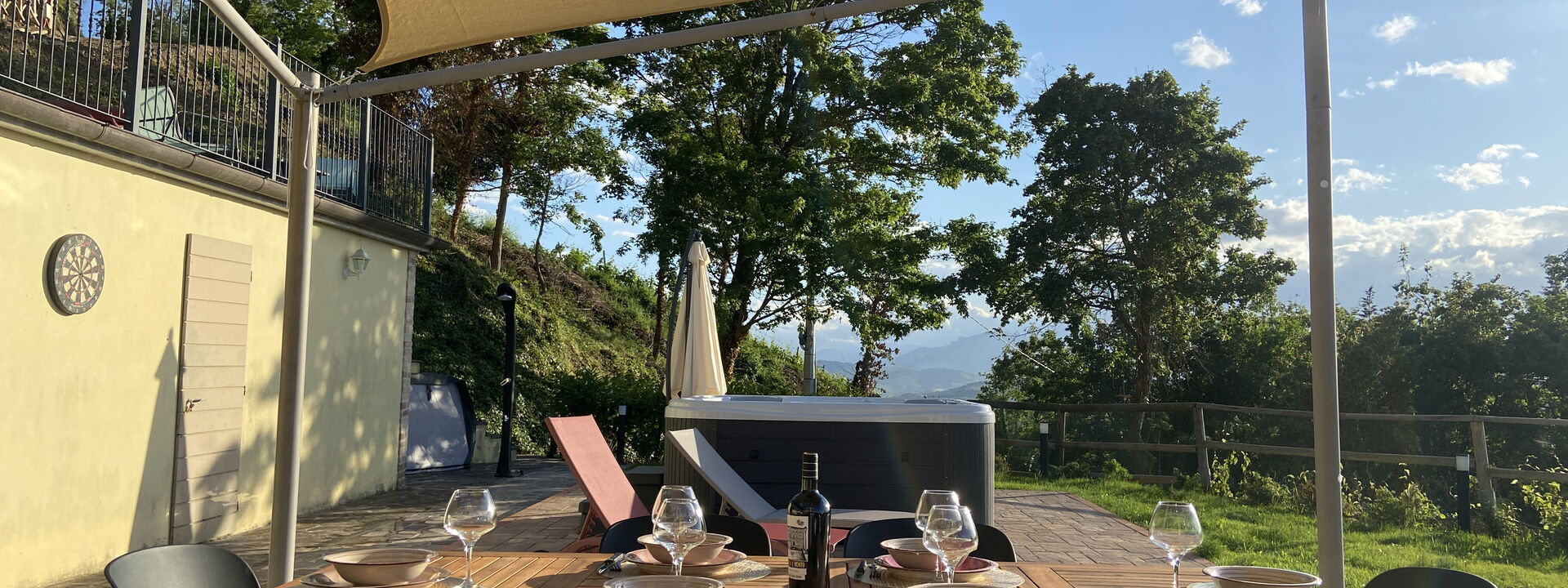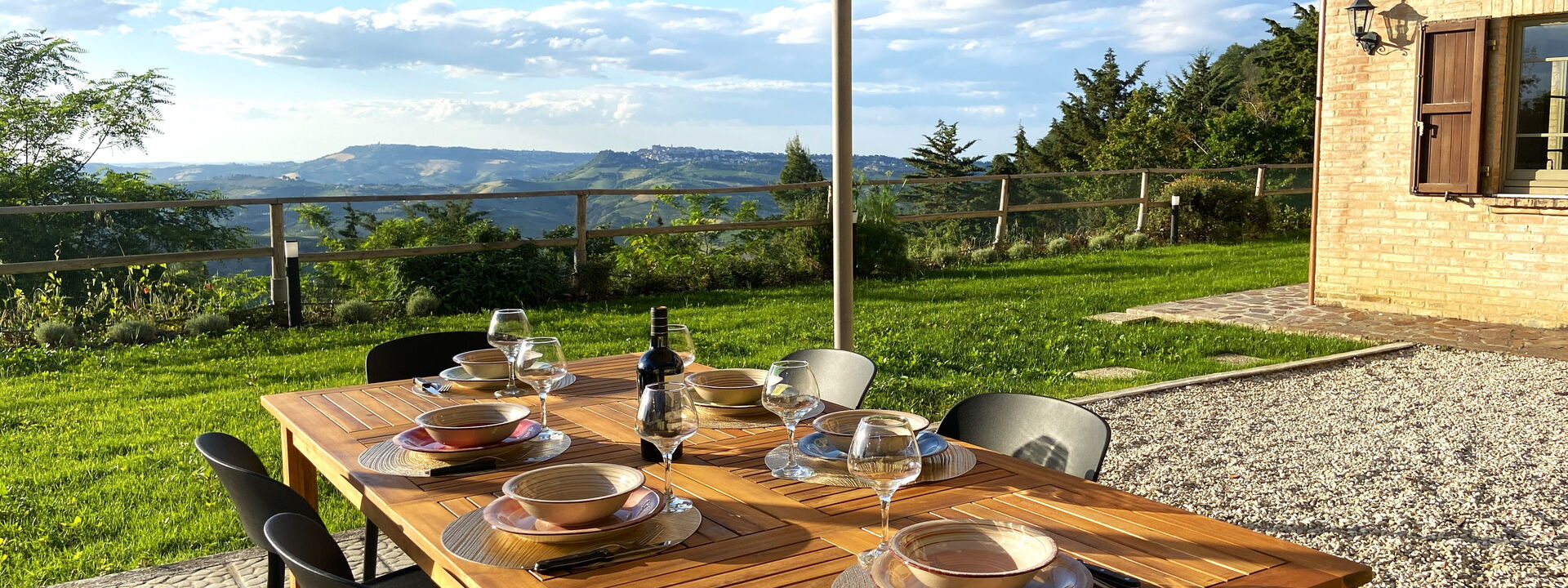 An enchanting place to relax with all the comforts this spacious property offers and enjoy the splendid surrounding panorama. Our Piceno hills, covered with vineyards, olive groves, and cereal fields, create a perfect mosaic of colors to be framed, sipping a pleasant glass of wine and listening to the sweet chirping of birds.