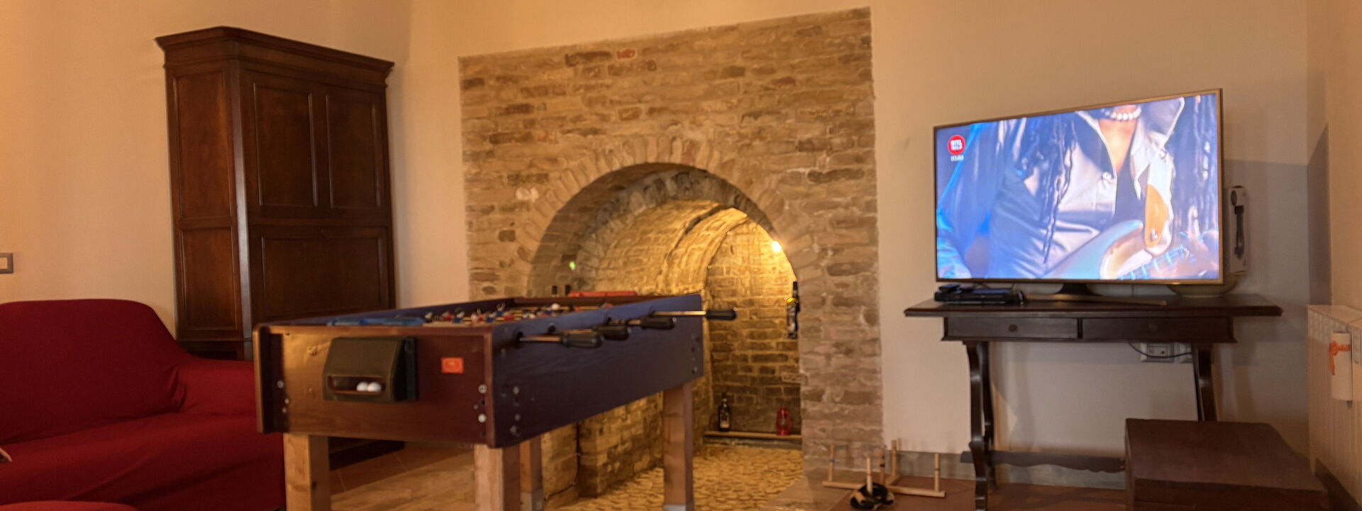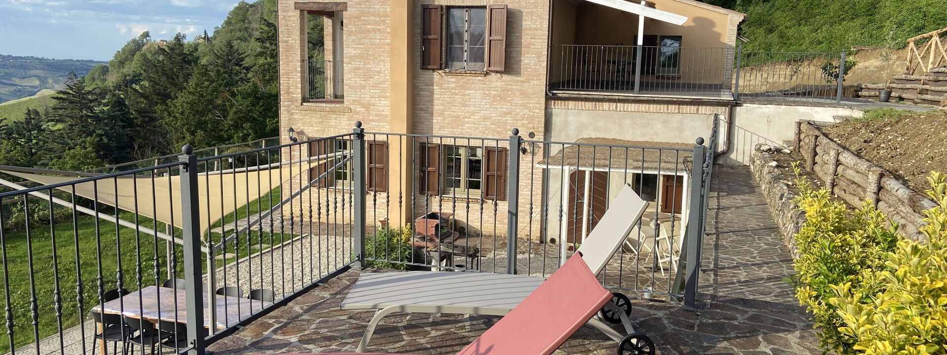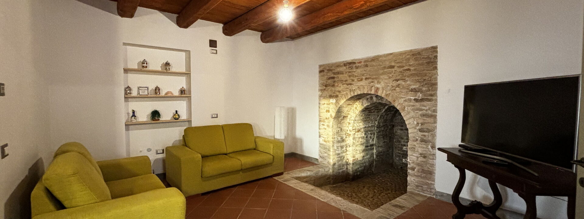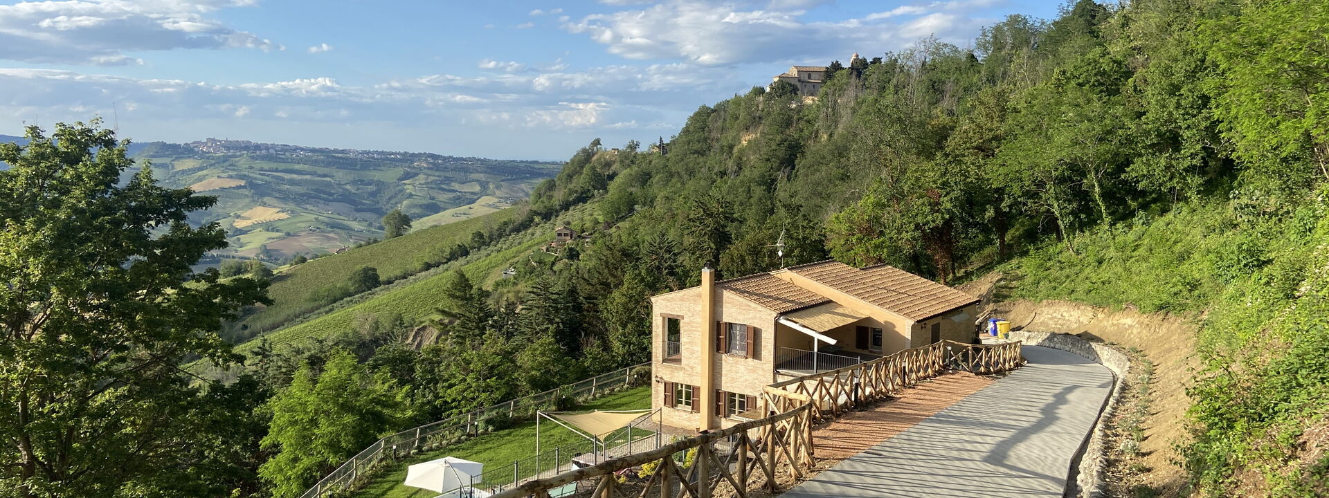 An enchanting place to relax with all the comforts this spacious property offers and enjoy the splendid surrounding panorama. Our Piceno hills, covered with vineyards, olive groves, and cereal fields, create a perfect mosaic of colors to be framed, sipping a pleasant glass of wine and listening to the sweet chirping of birds.